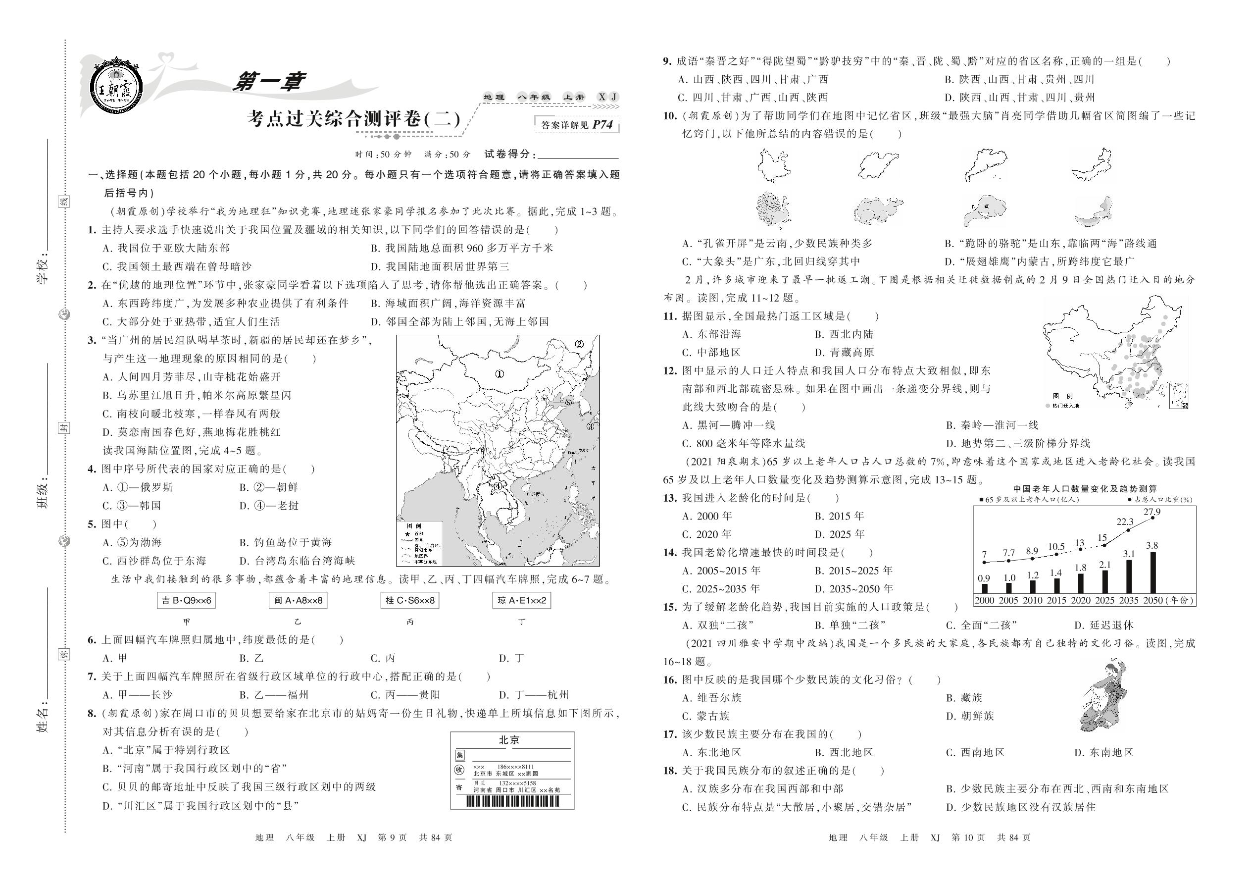 2021上册八年级地理湘教版 第一章 考点过关综合测评卷(二)
