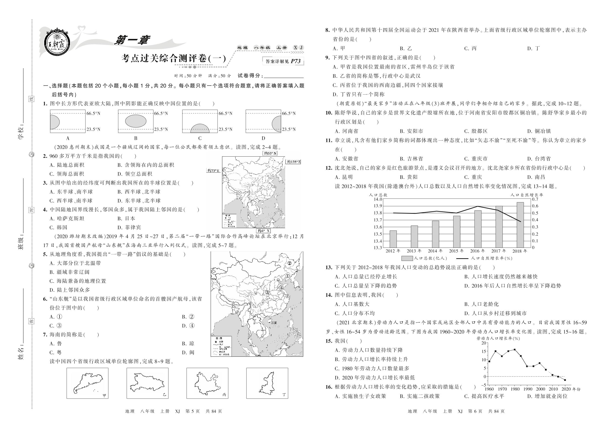 2021上册八年级地理湘教版 第一章 考点过关综合测评卷(一)