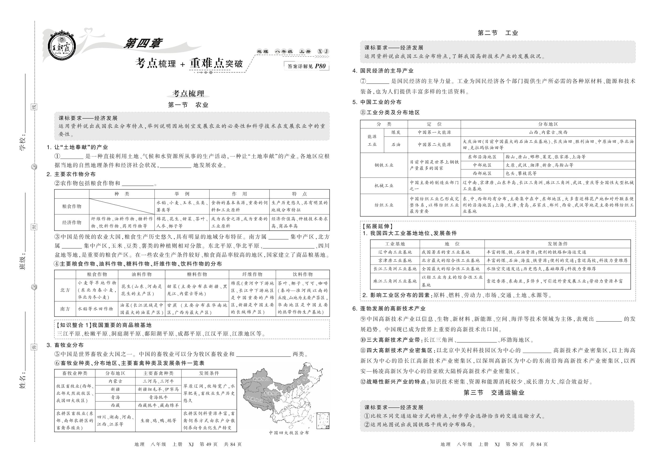 2021上册八年级地理湘教版 第四章 考点梳理+重难点突破