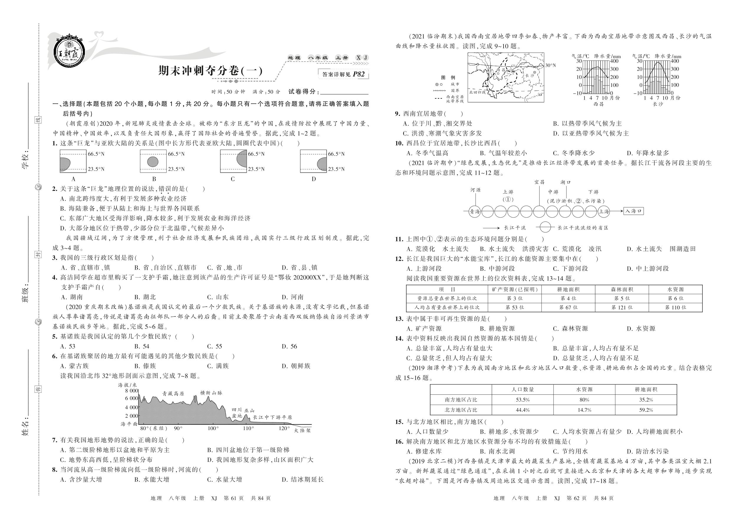2021上册八年级地理湘教版 期末冲刺夺分卷(一)