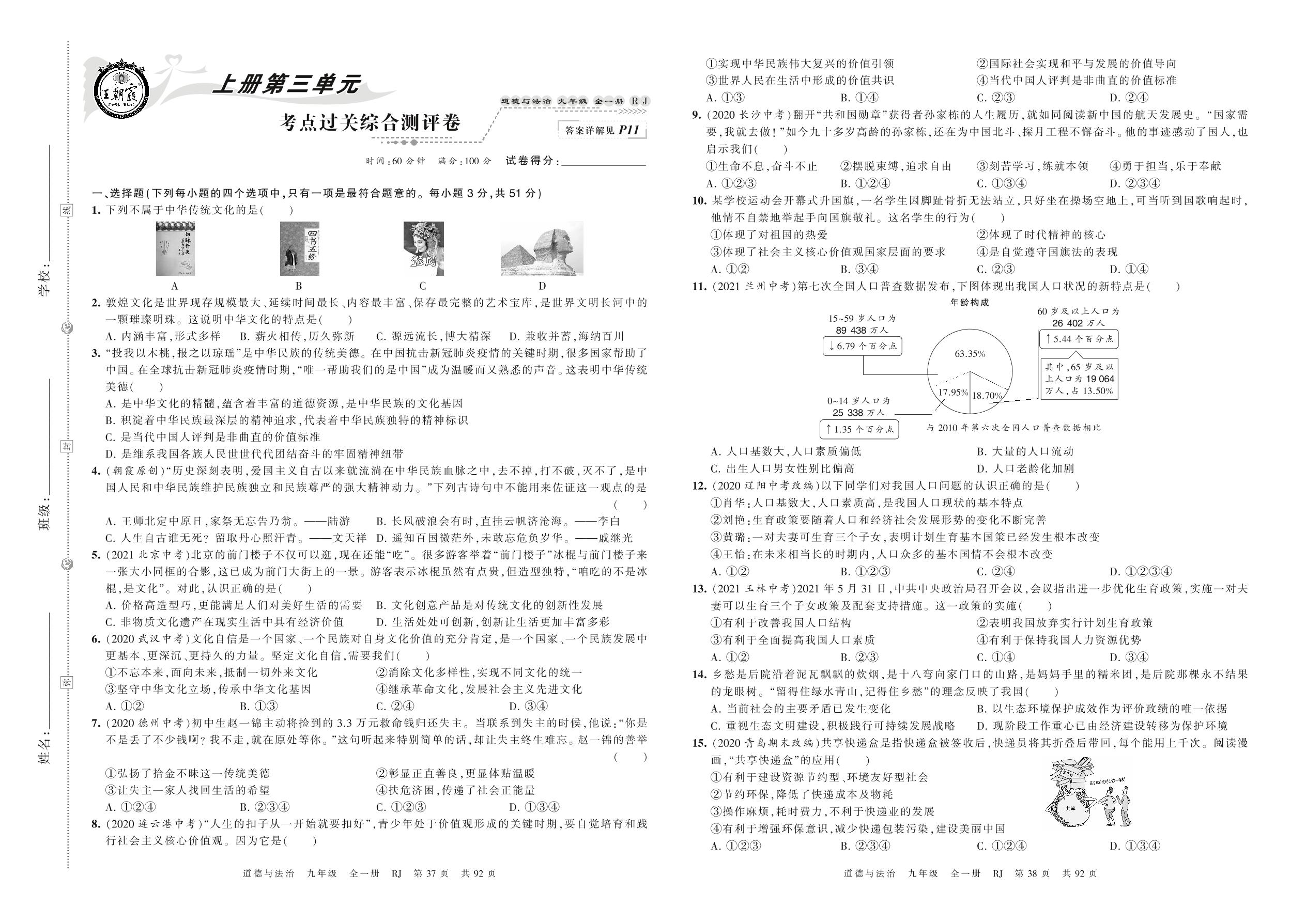 2021秋上册九年级道德与法治人教版 第三单元 考点过关综合测评卷