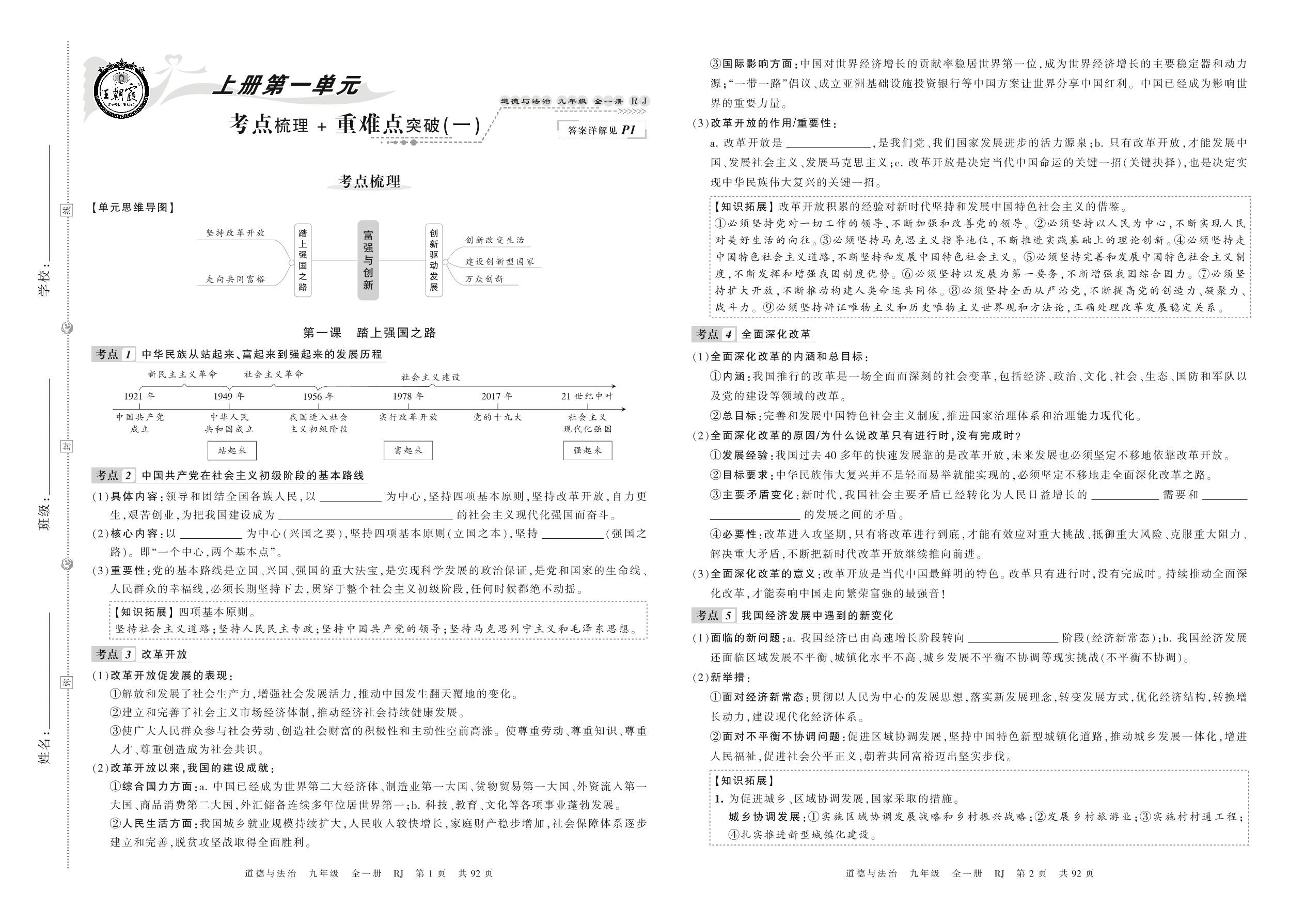 2021秋上册九年级道德与法治人教版 第一单元 考点梳理 + 重难点突破(一)
