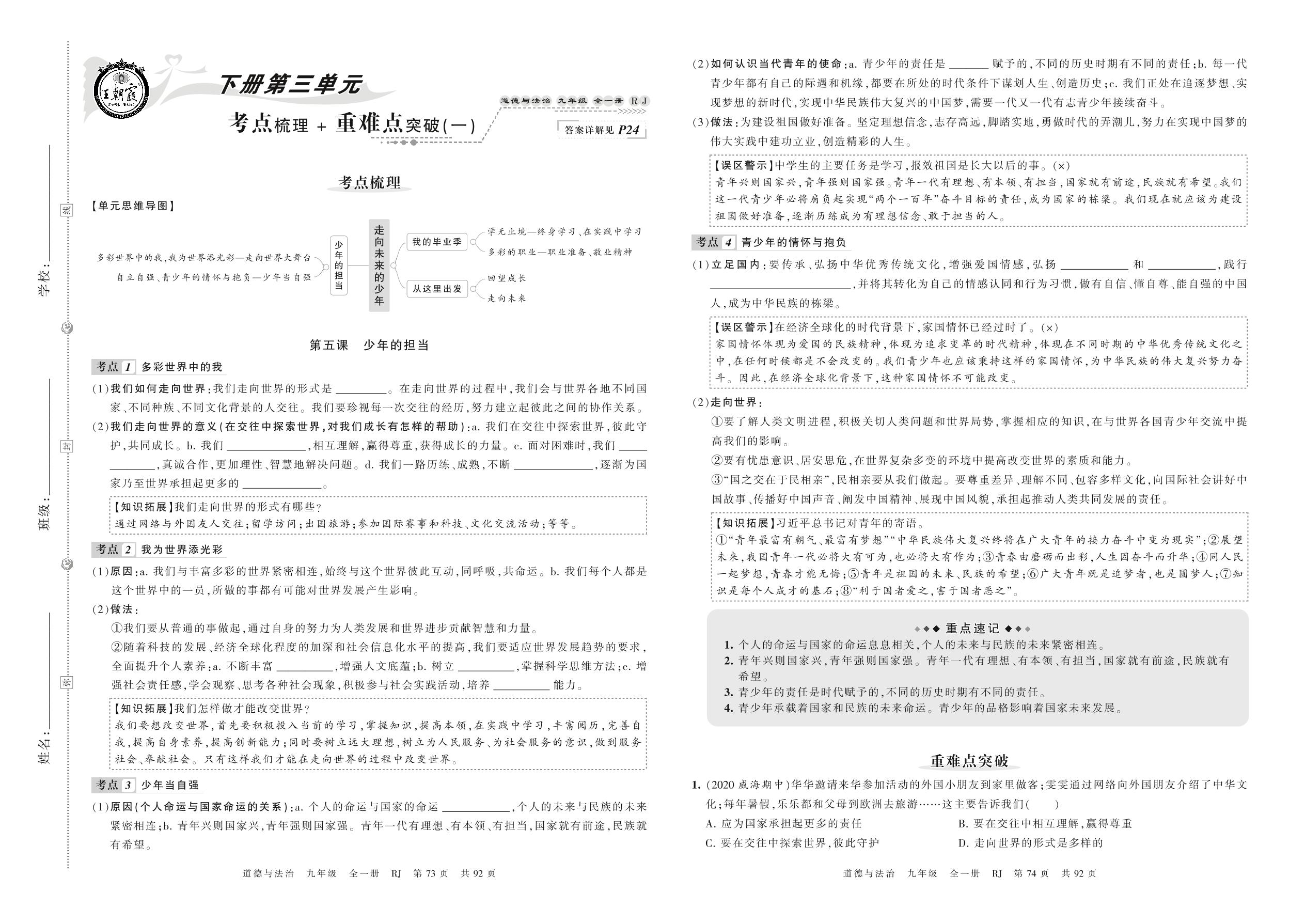 2022春下册九年级道德与法治人教版 第三单元 考点梳理 + 重难点突破(一)