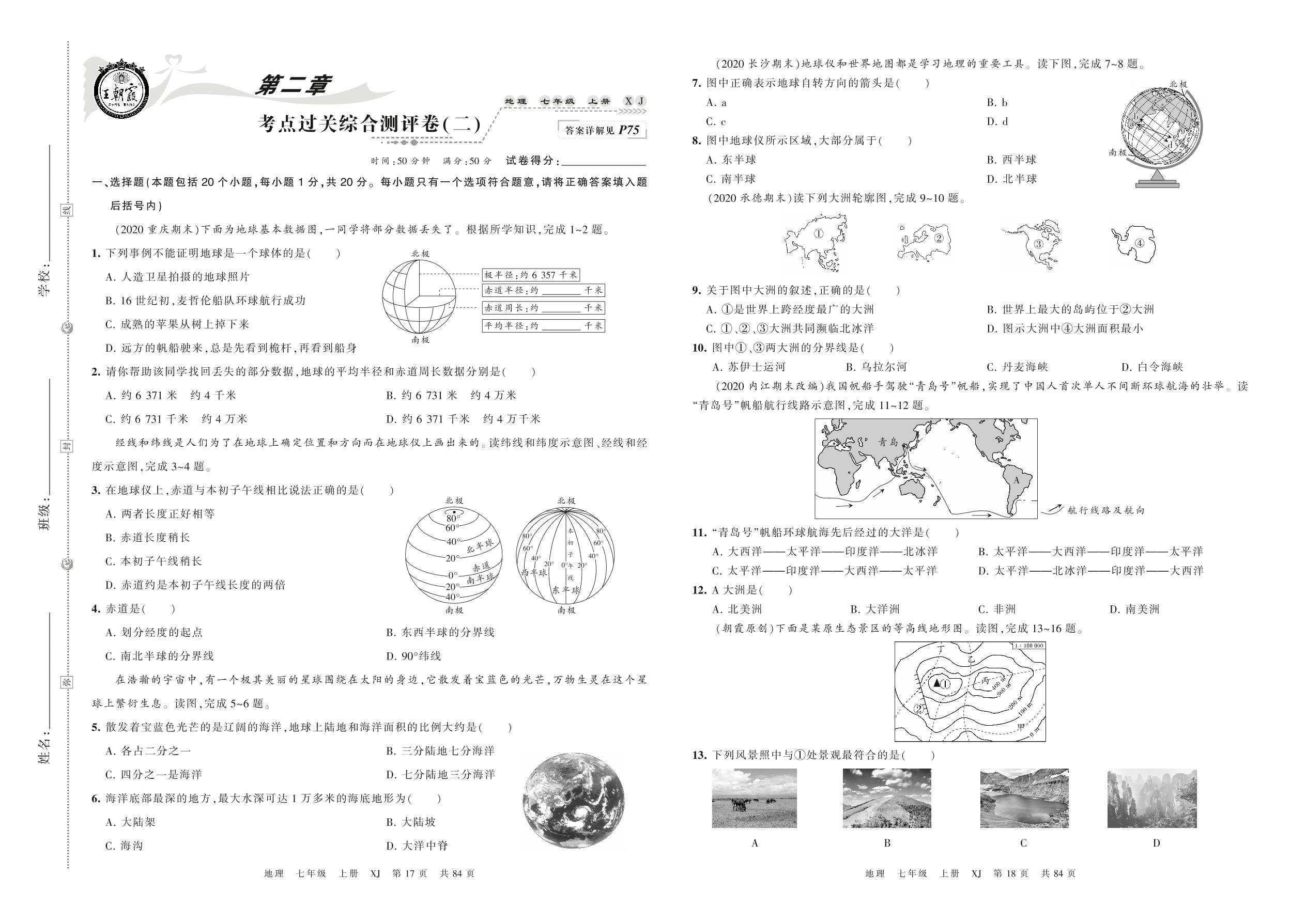 2021上册七年级地理湘教版 第二章 考点过关综合测评卷(二)