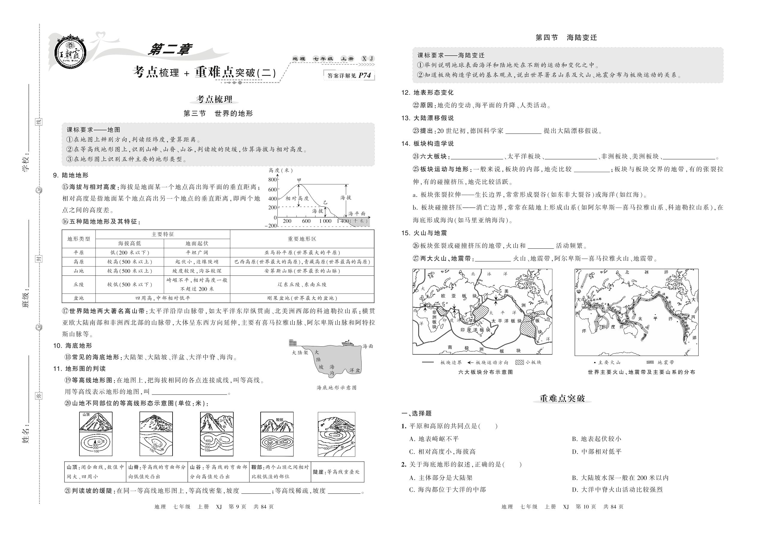 2021上册七年级地理湘教版 第二章 考点梳理+重难点突破(二)