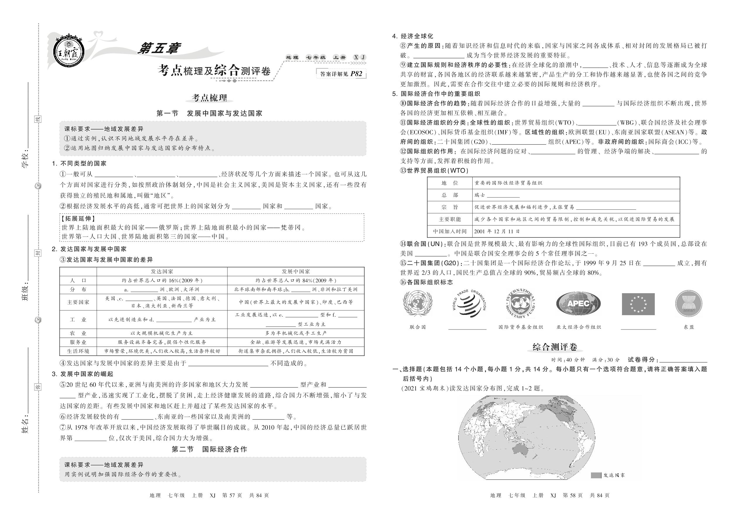 2021上册七年级地理湘教版 第五章 考点梳理及综合测评卷