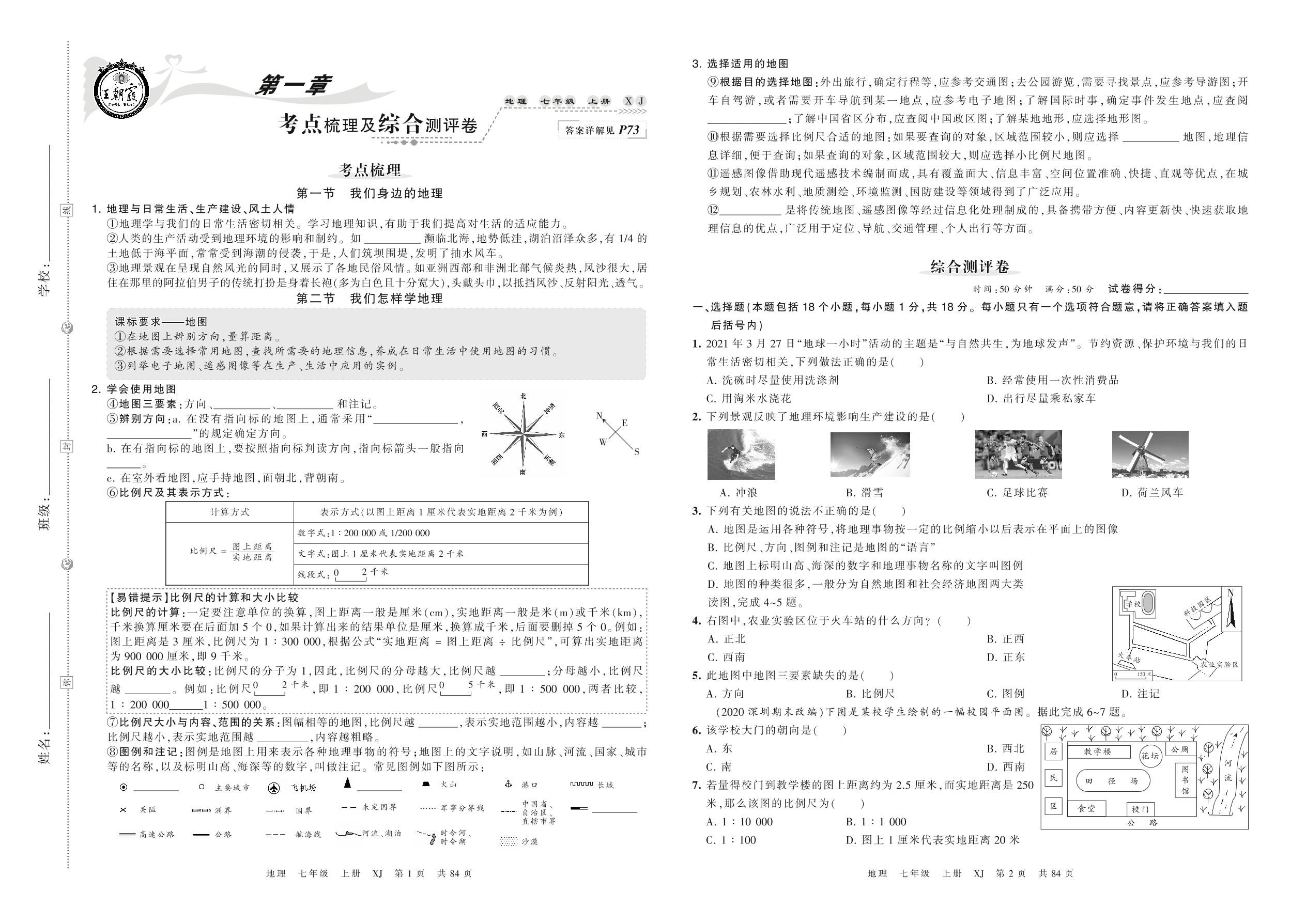 2021上册七年级地理湘教版 第一章 考点梳理及综合测评卷