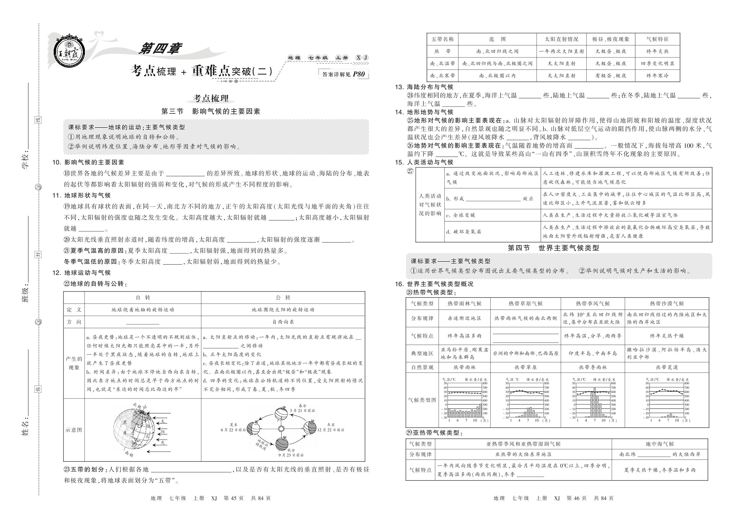 2021上册七年级地理湘教版 第四章 考点梳理+重难点突破(二)