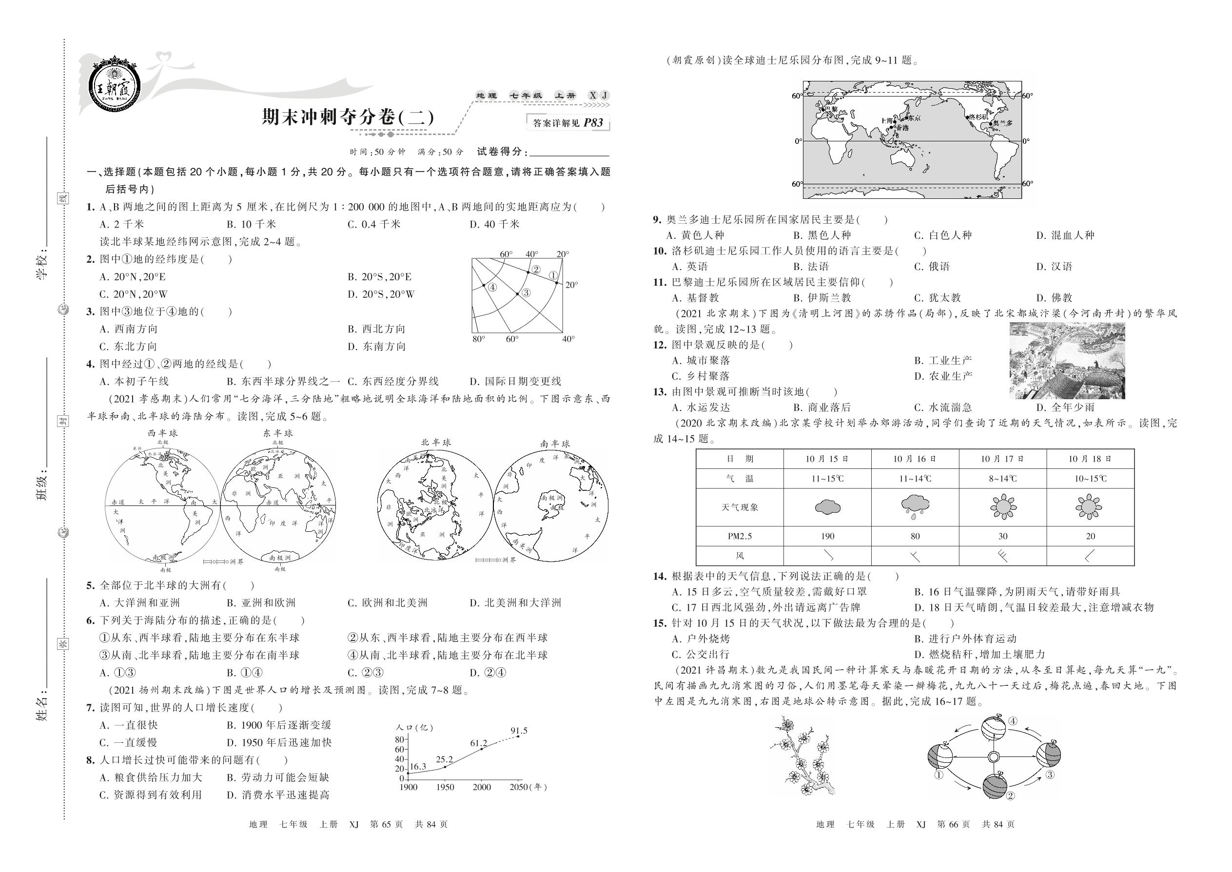 2021上册七年级地理湘教版 期末冲刺夺分卷(二)