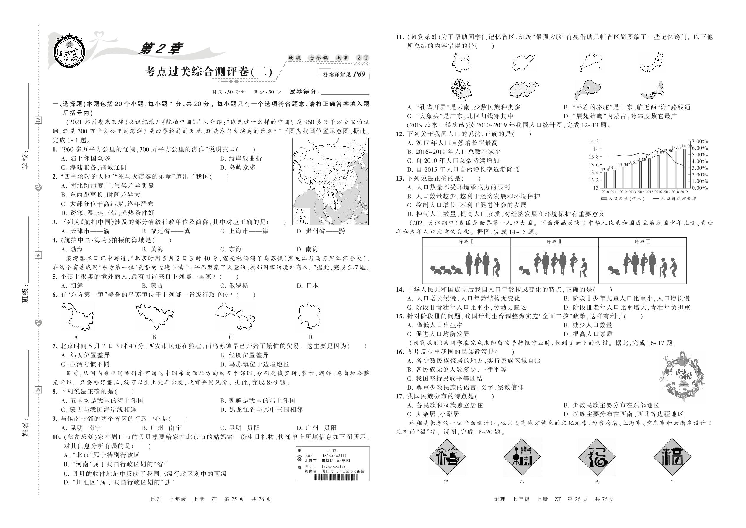2021上册七年级地理中图版 第2章 考点过关综合测评卷(二)