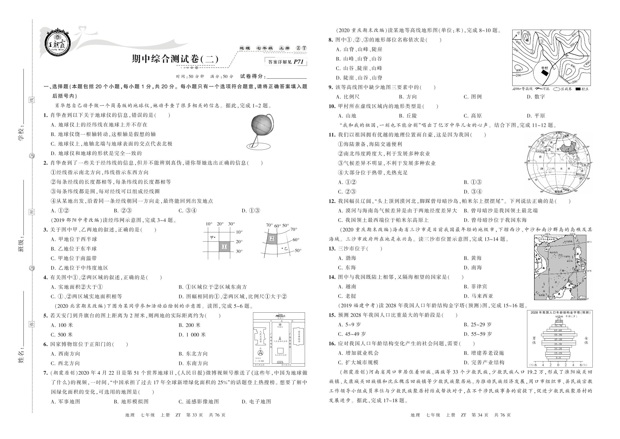2021上册七年级地理中图版 期中综合测试卷(二)