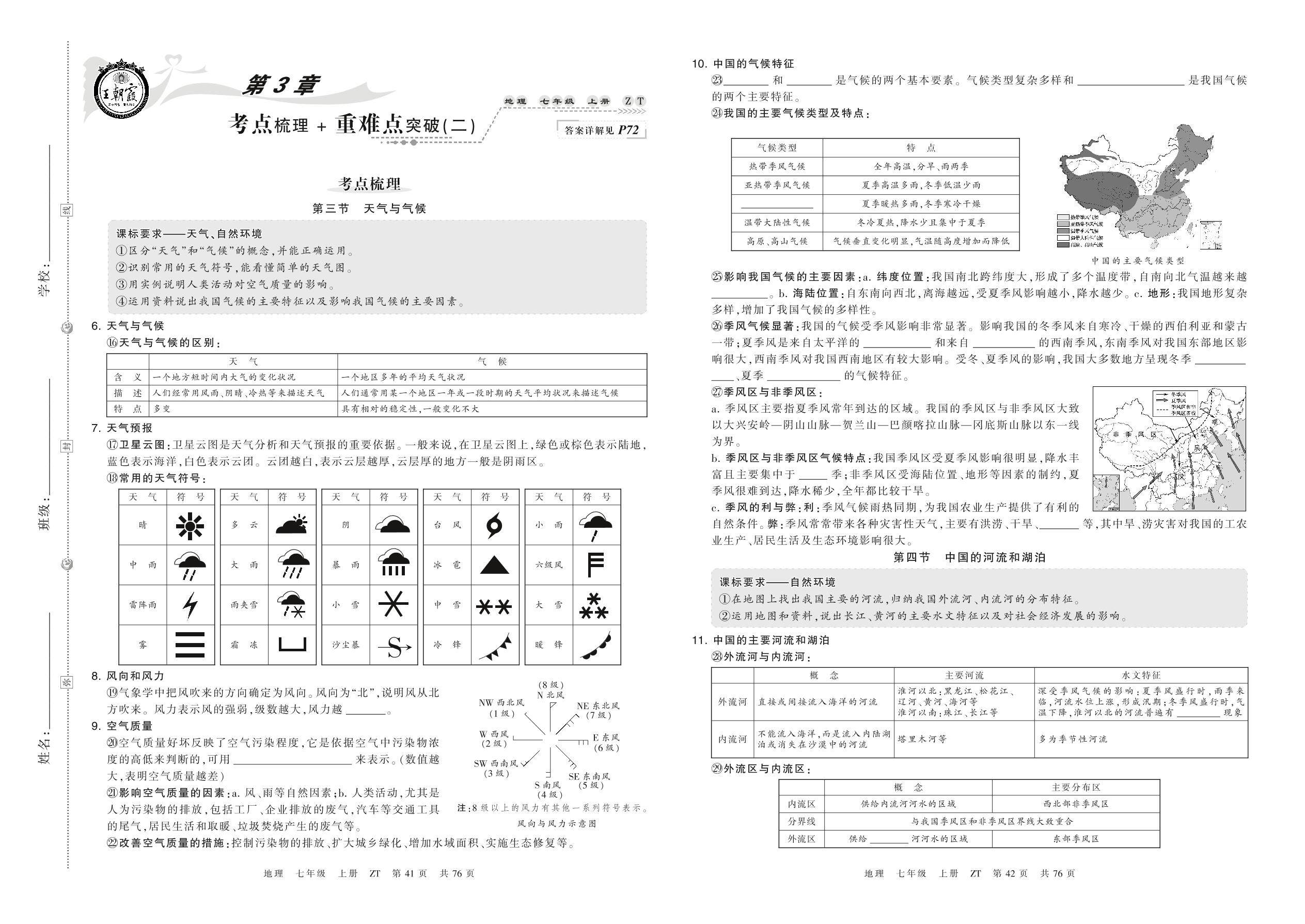 2021上册七年级地理中图版 第3章 考点梳理+重难点突破(二)