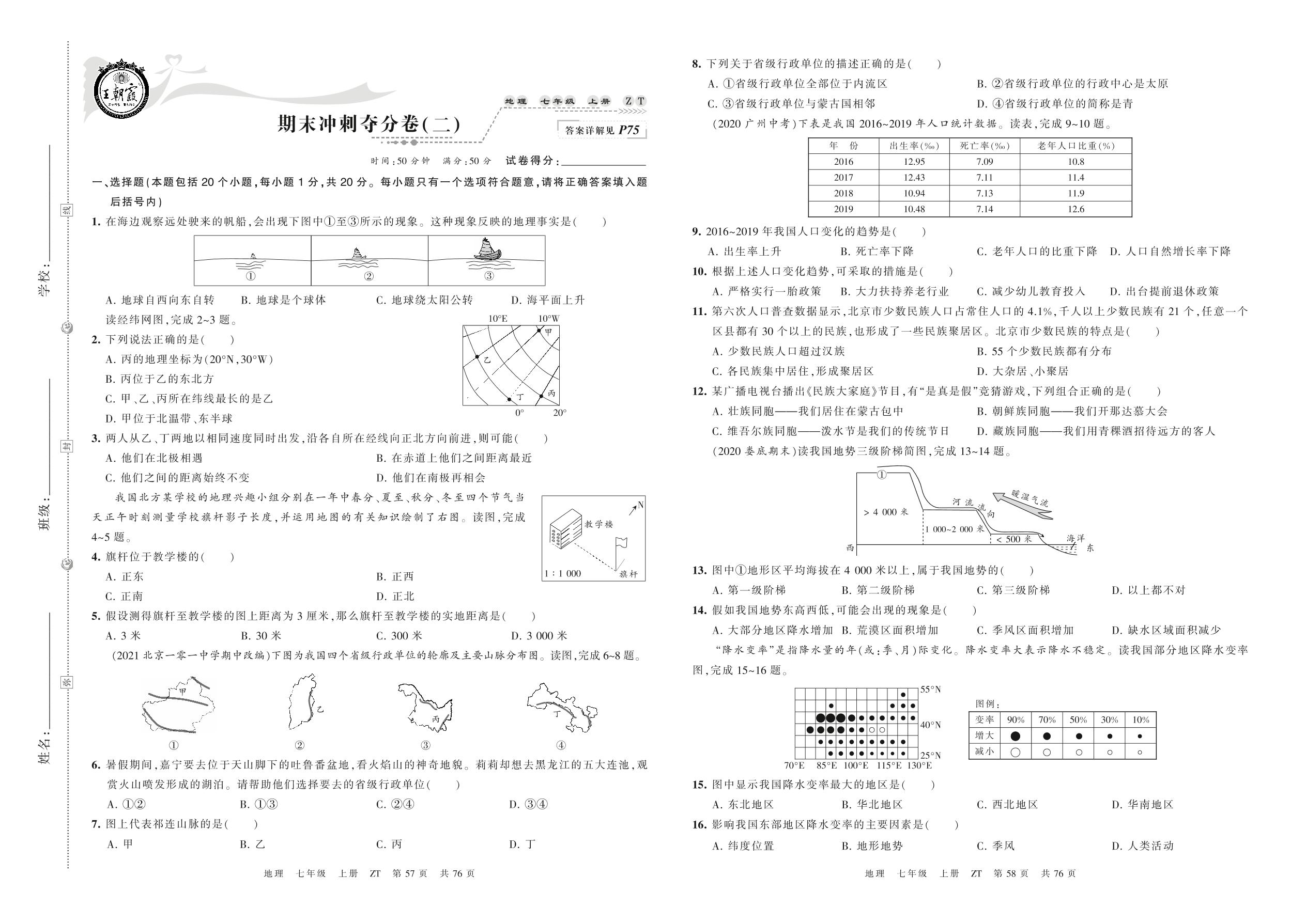 2021上册七年级地理中图版 期末冲刺夺分卷(二)