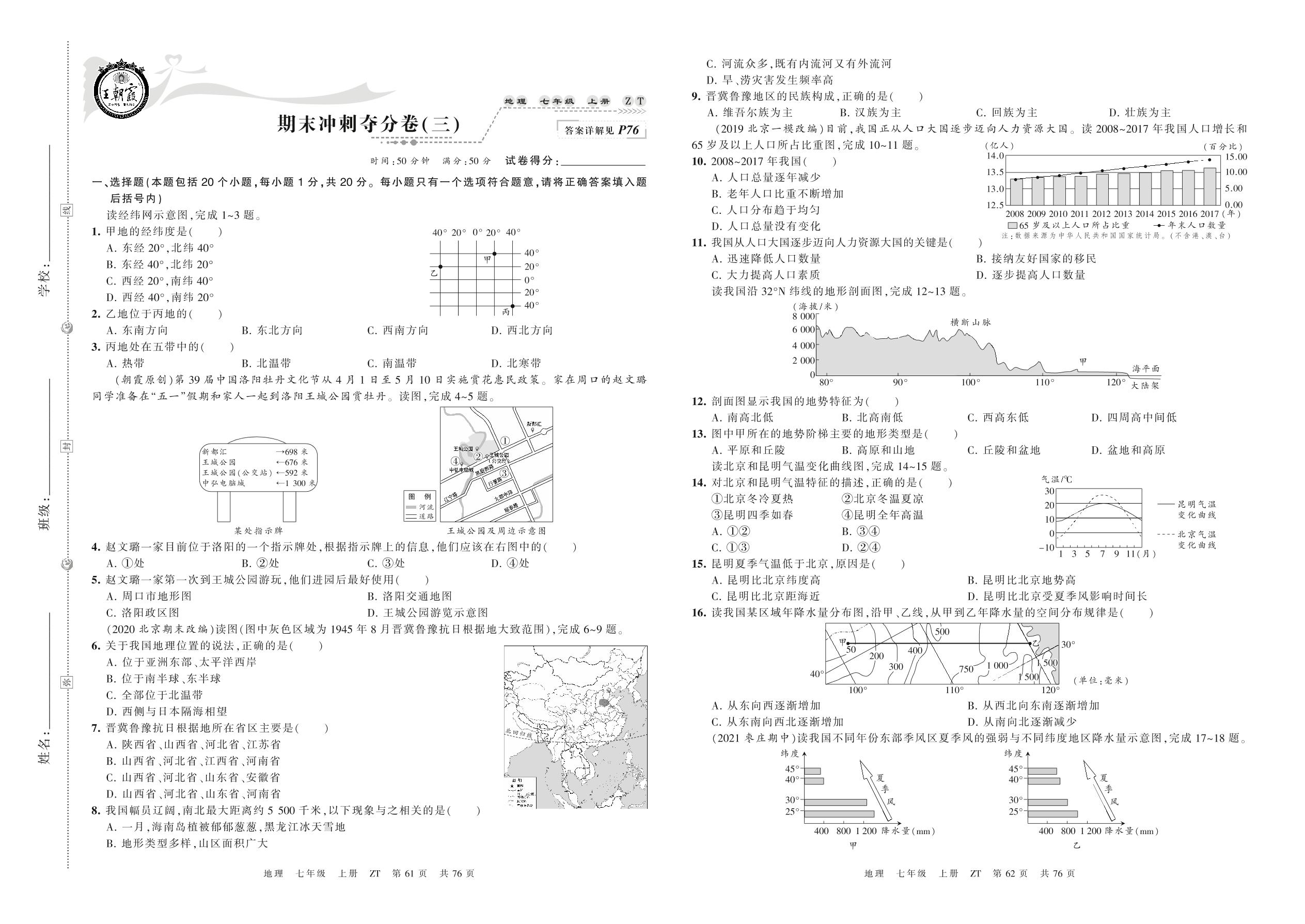 2021上册七年级地理中图版 期末冲刺夺分卷(三)