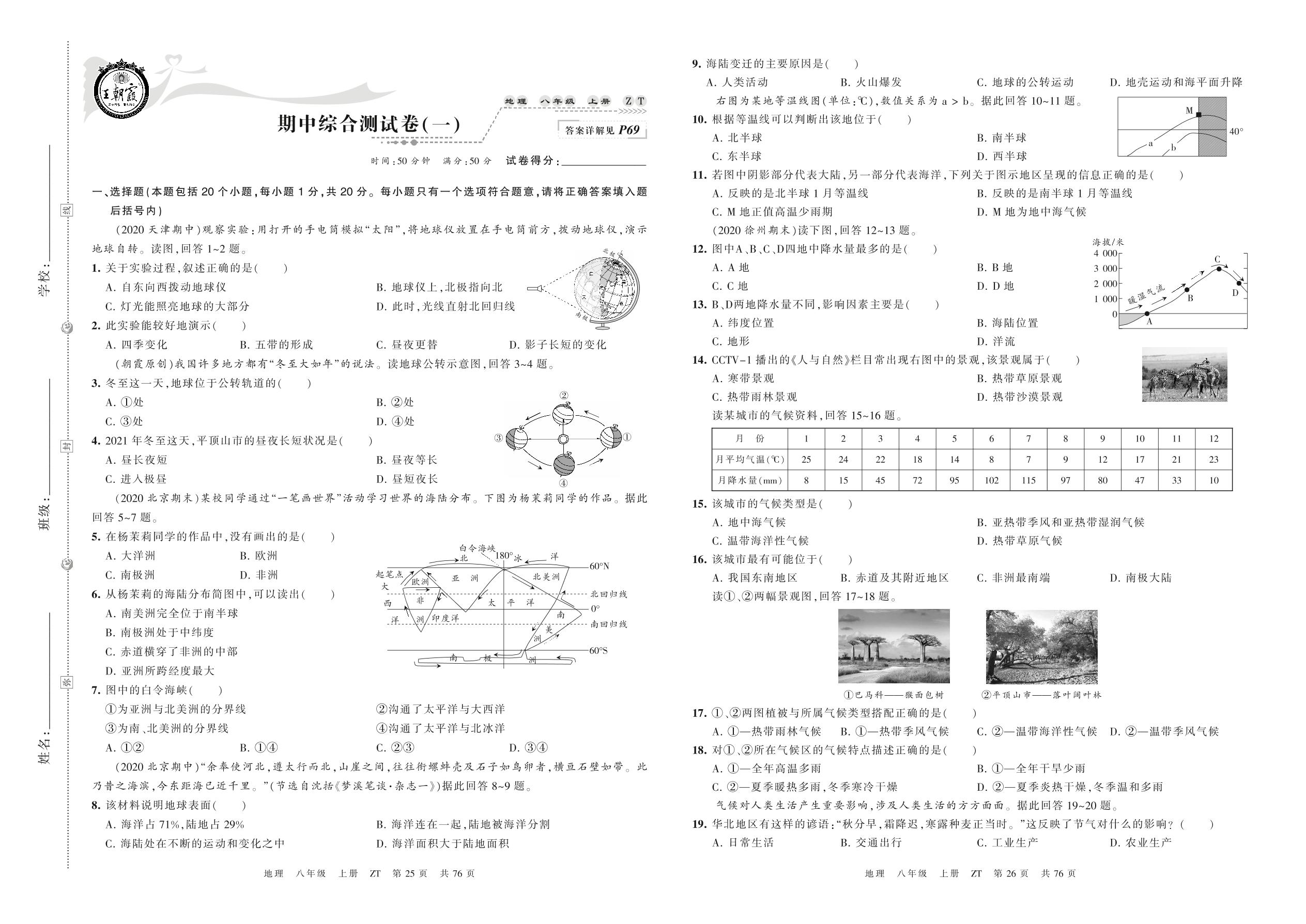 2021上册八年级地理中图版 期中综合测试卷(一)