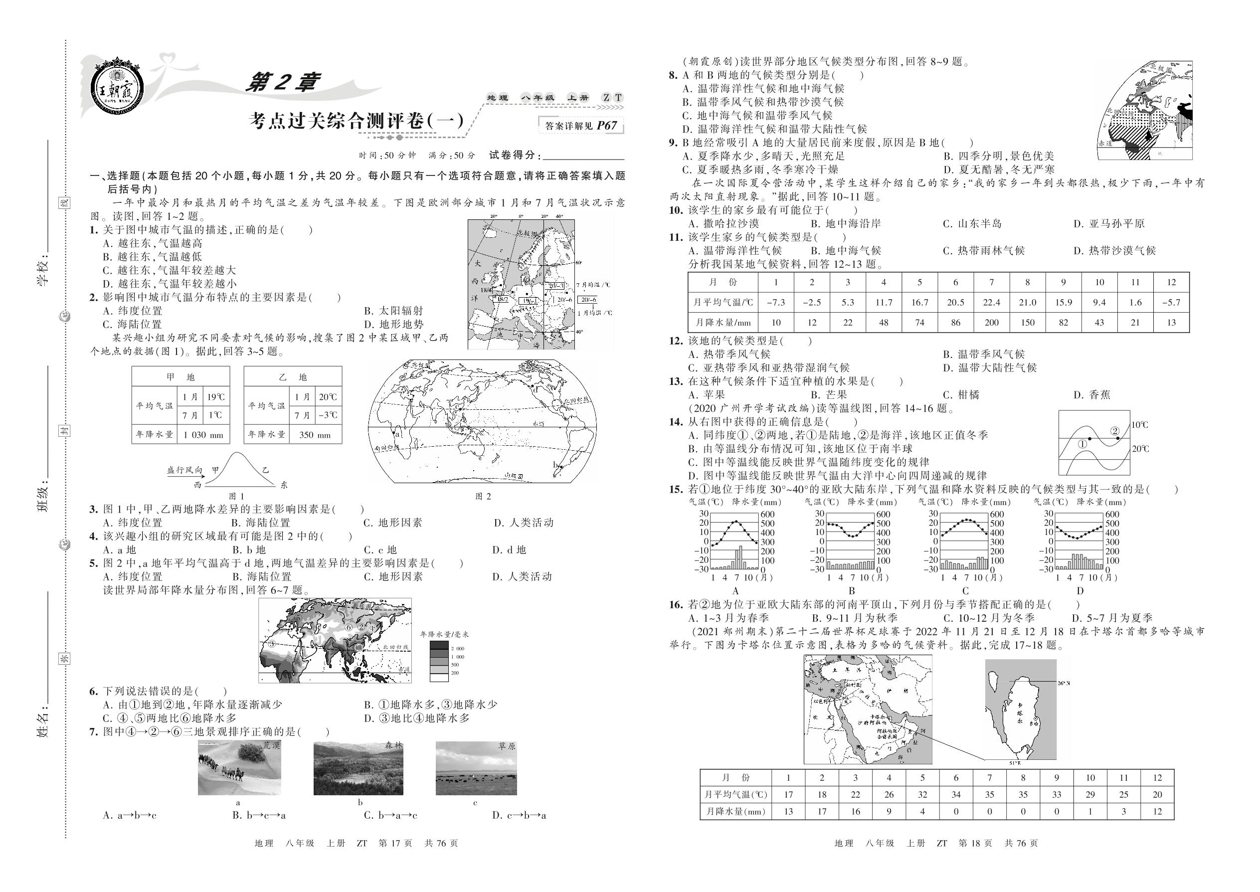 2021上册八年级地理中图版 第2章 考点过关综合测评卷(一)