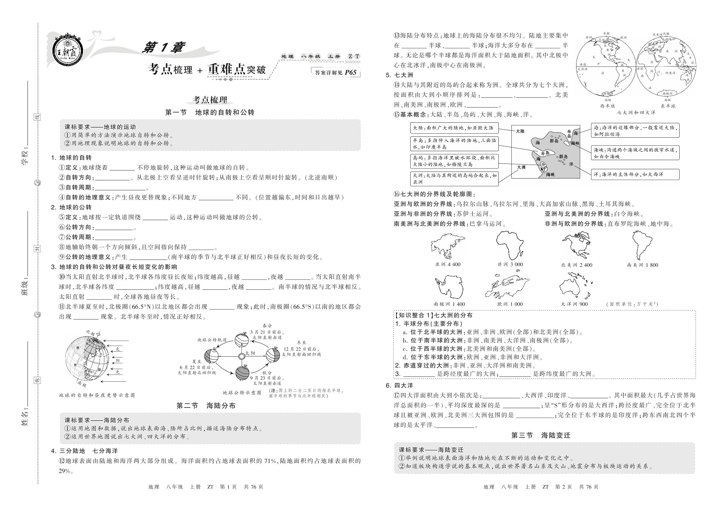2021上册八年级地理中图版 第1章 考点梳理+重难点突破