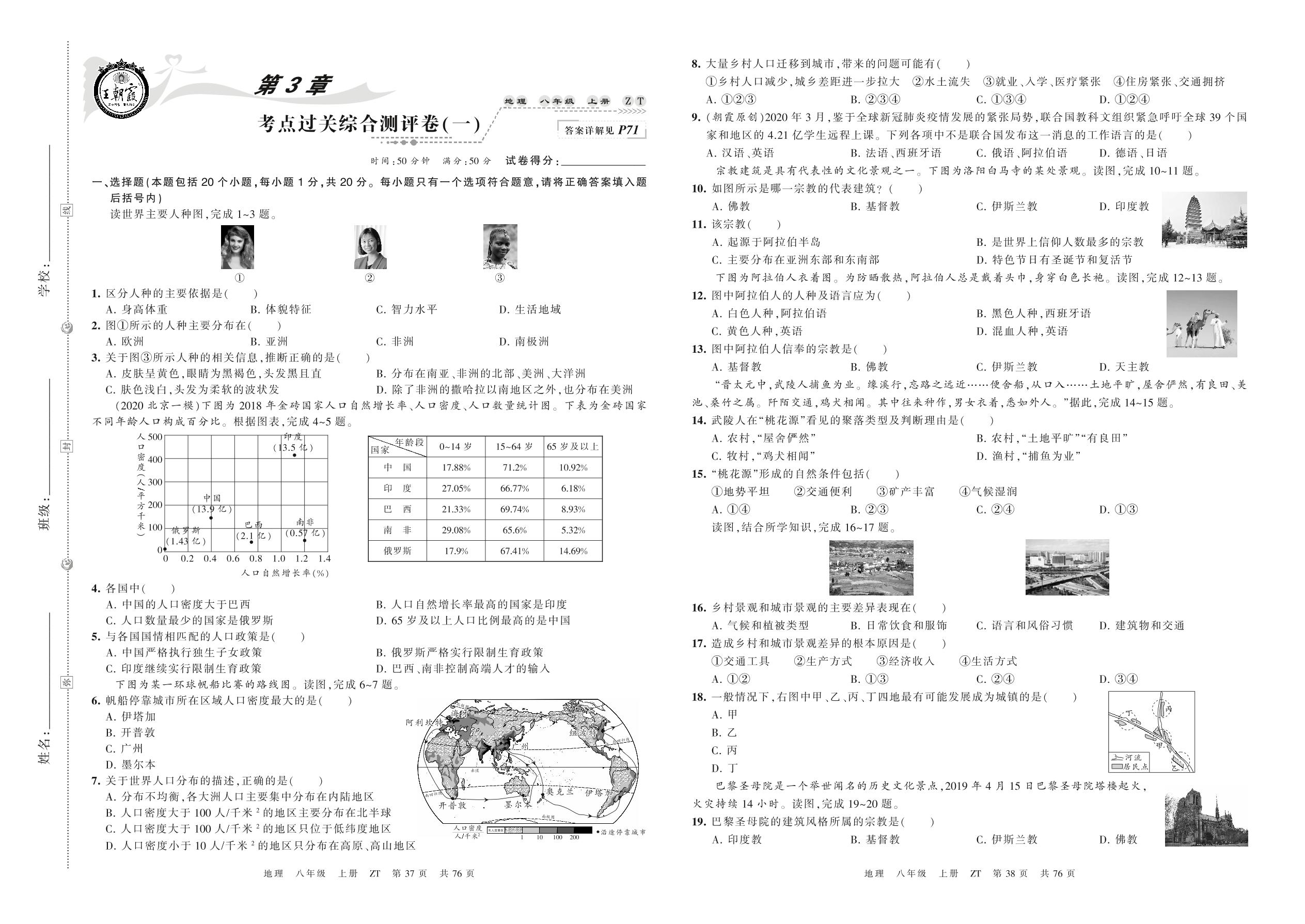 2021上册八年级地理中图版 第3章 考点过关综合测评卷(一)