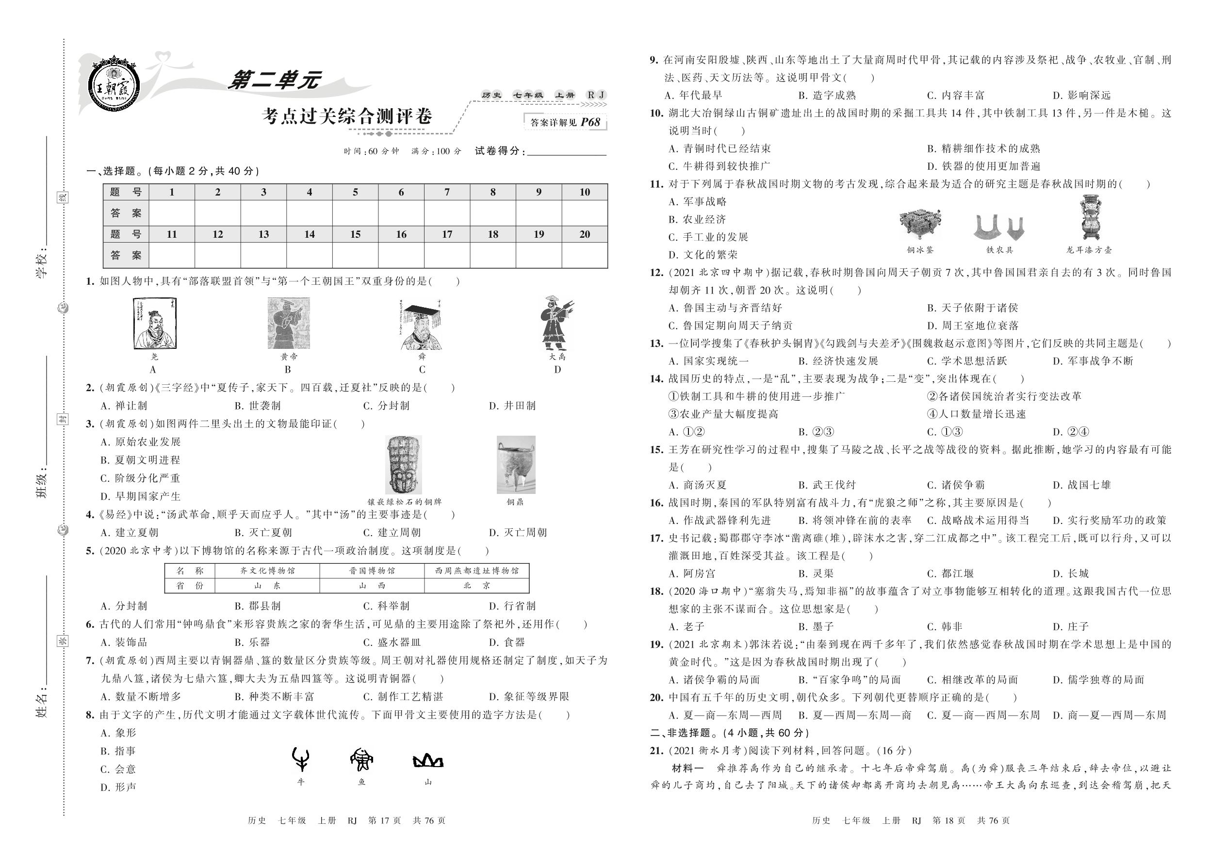 2021上册七年级历史人教版 第二单元 考点过关综合测评卷