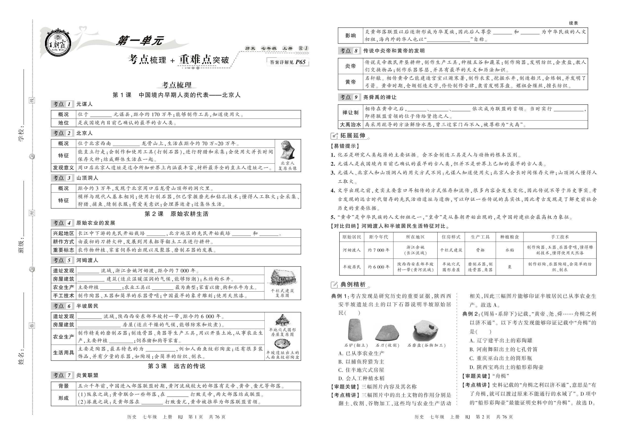 2021上册七年级历史人教版 第一单元 考点梳理+重难点突破