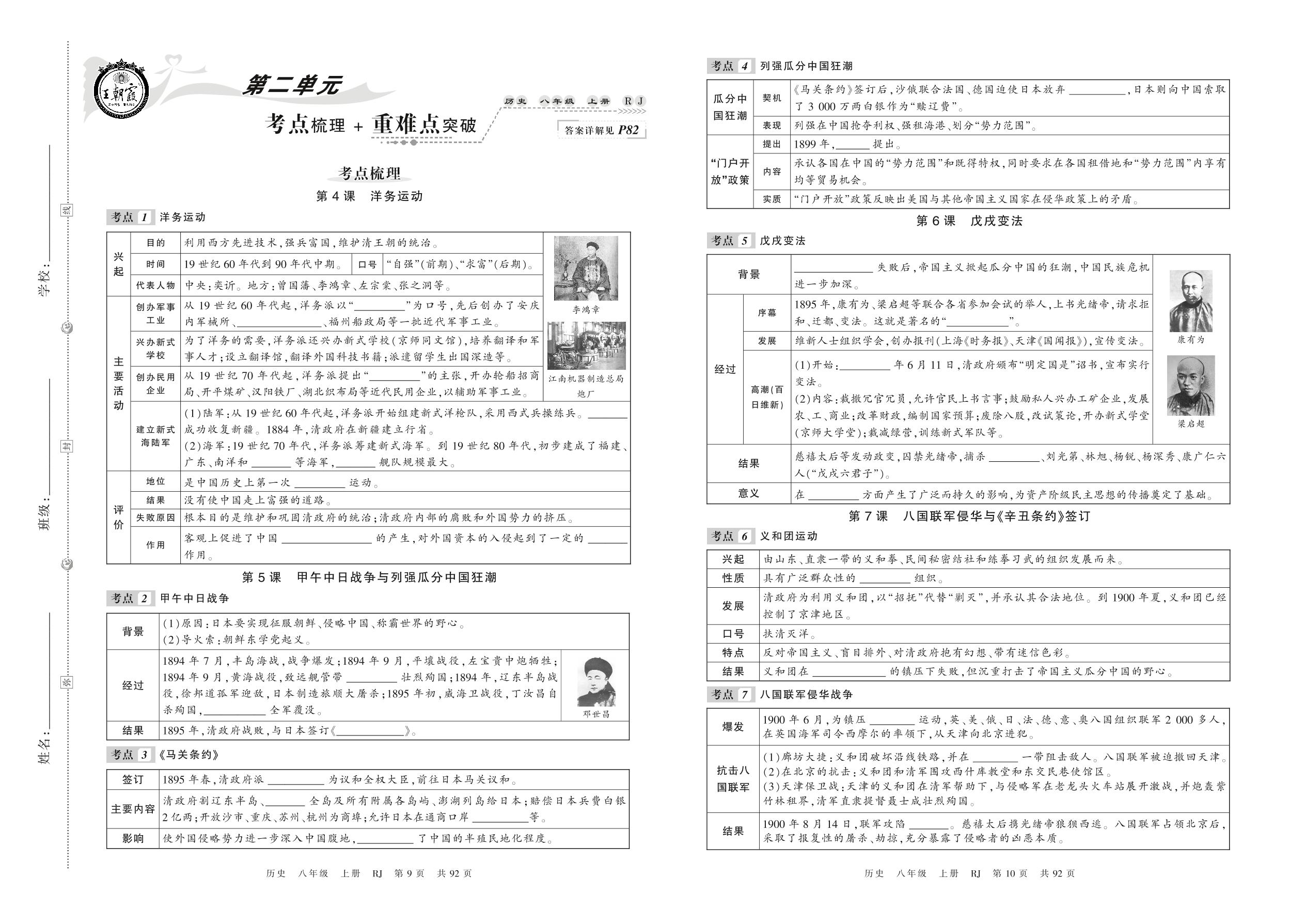 2021上册八年级历史人教版 第二单元 考点梳理+重难点突破