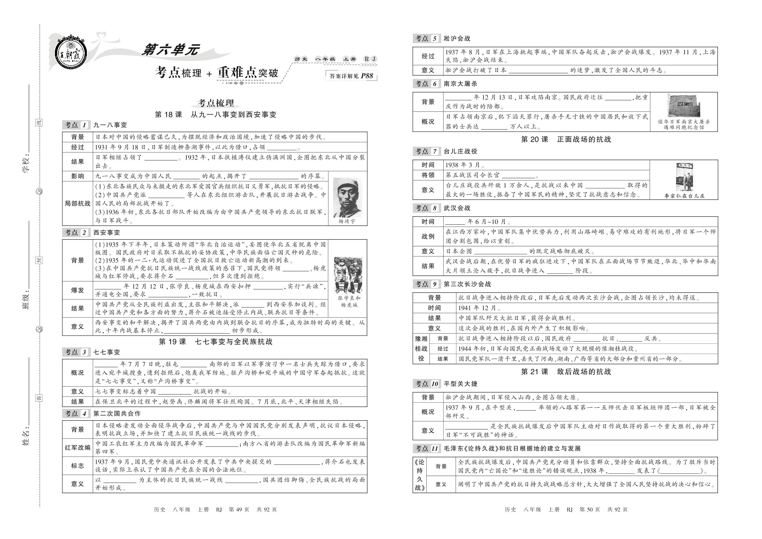 2021上册八年级历史人教版 第六单元 考点梳理+重难点突破