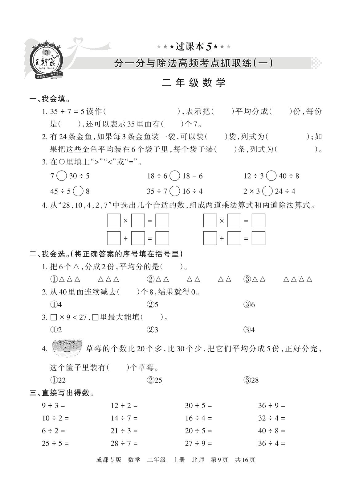 王朝霞期末过课本——分一分与除法高频考点抓取练(一)二年级上册数学(北师版)【5】