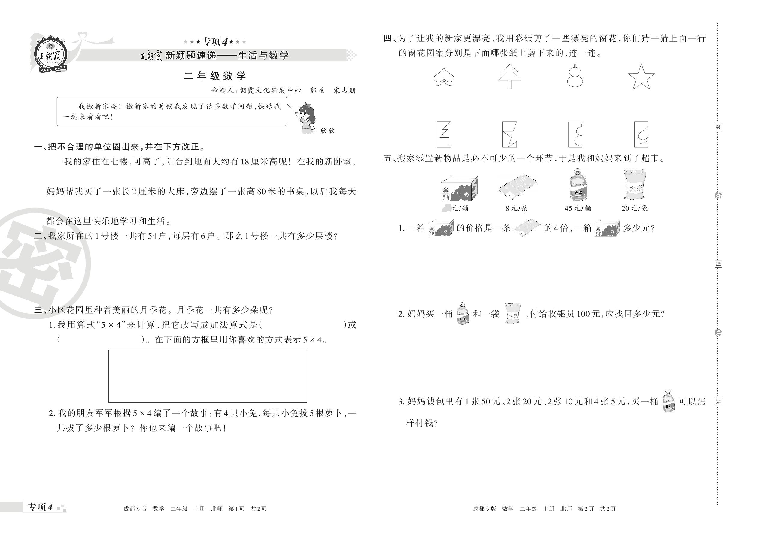 王朝霞期末专项卷——新颖题速递:生活与数学二年级上册数学(北师版)【4】