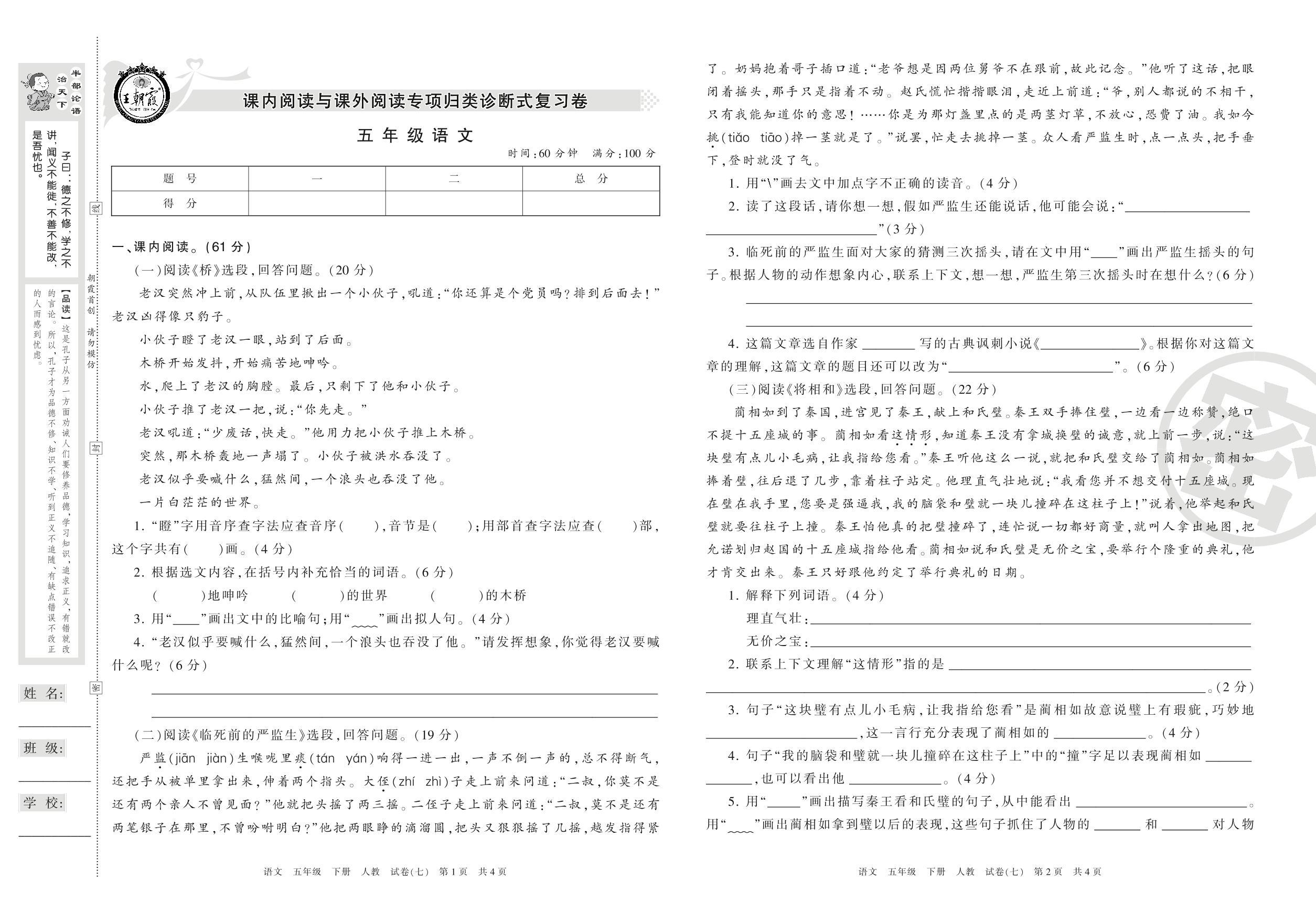 王朝霞期末专项卷五年级下册语文(人教版)_R210801212214【7】