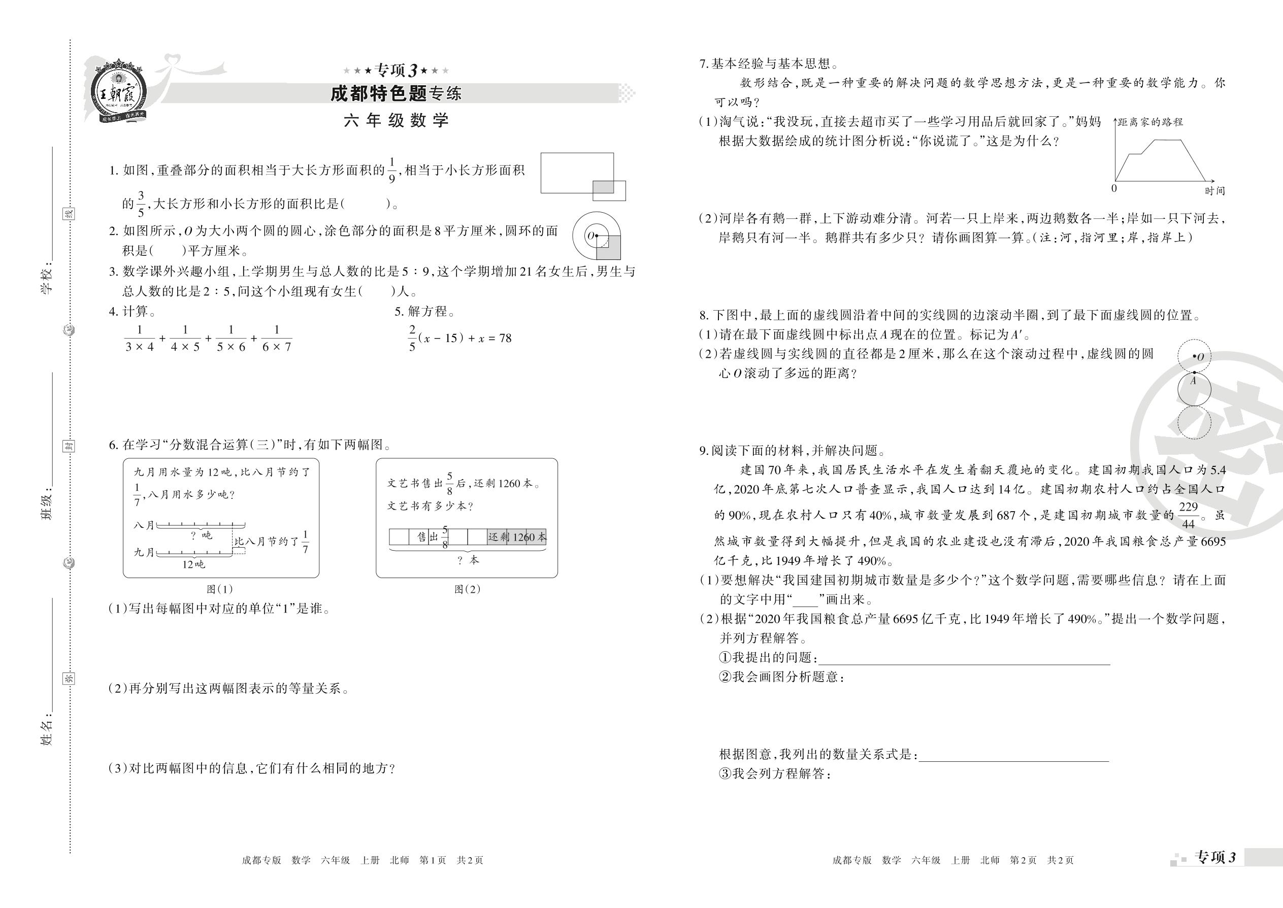 王朝霞期末专项卷——成都特色题专练六年级上册数学(北师版)【3】