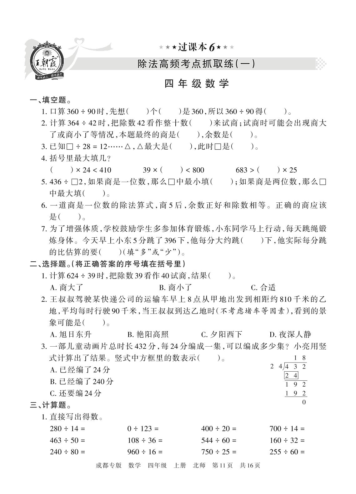 王朝霞期末过课本——除法高频考点抓取练(一)四年级上册数学(北师版)【6】