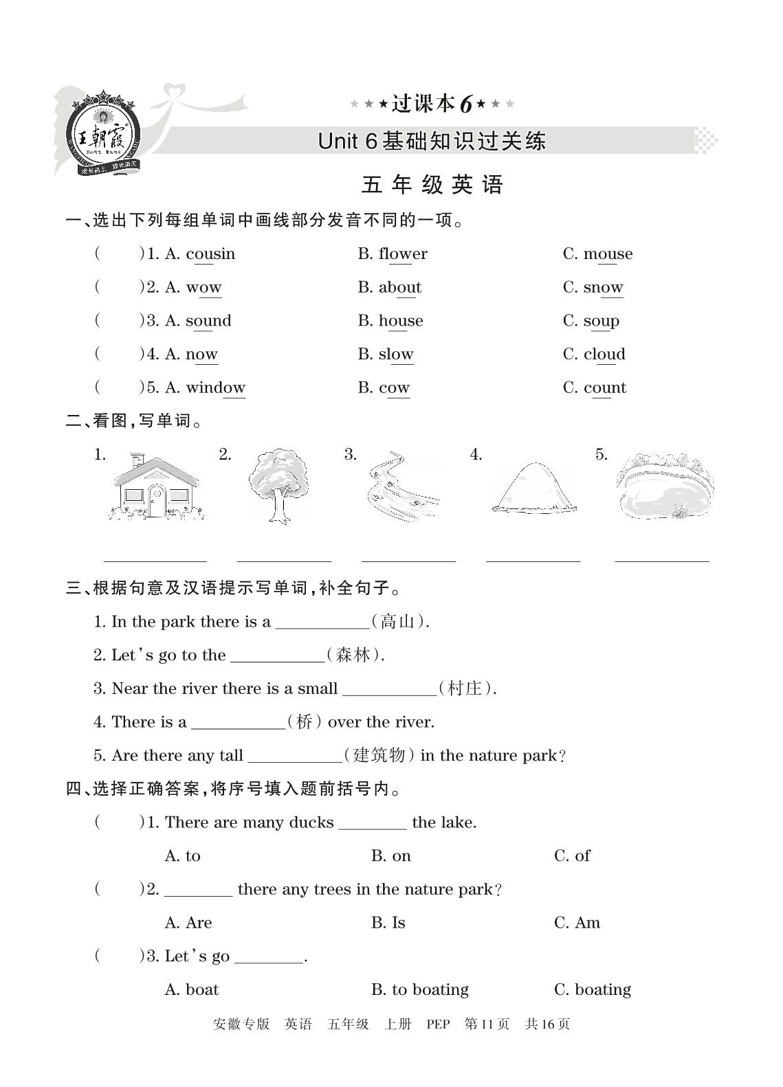 王朝霞期末过课本——Unit 6基础知识过关练五年级上册英语(人教PEP版)【6】