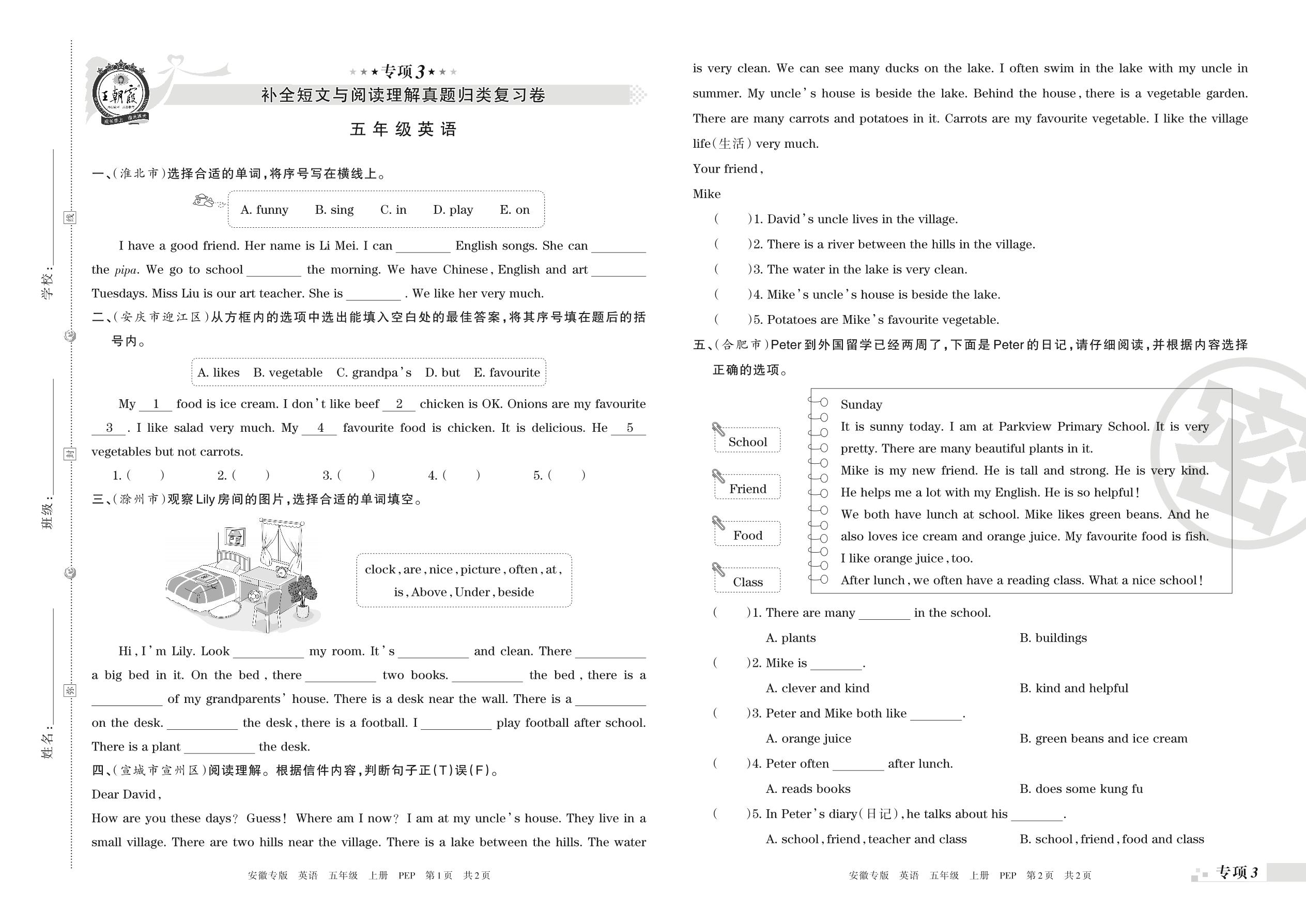 王朝霞期末专项卷——补全短文与阅读理解真题归类复习卷五年级上册英语(人教PEP版)【3】