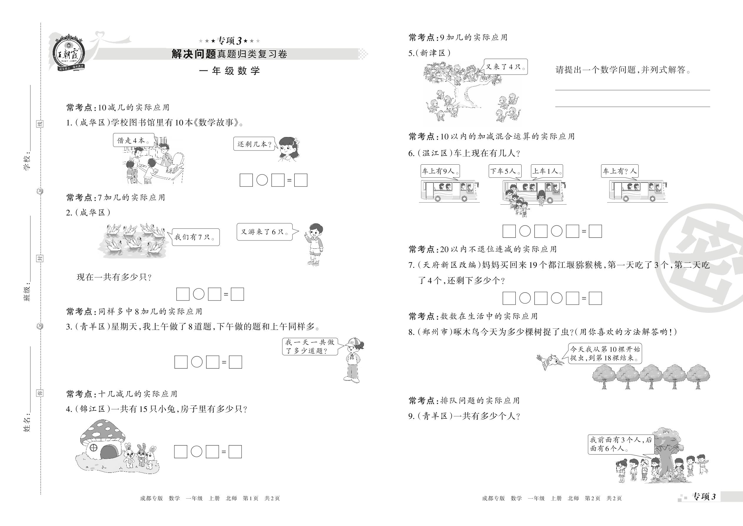 王朝霞期末专项卷——解决问题真题归类复习卷一年级上册数学(北师版)【3】