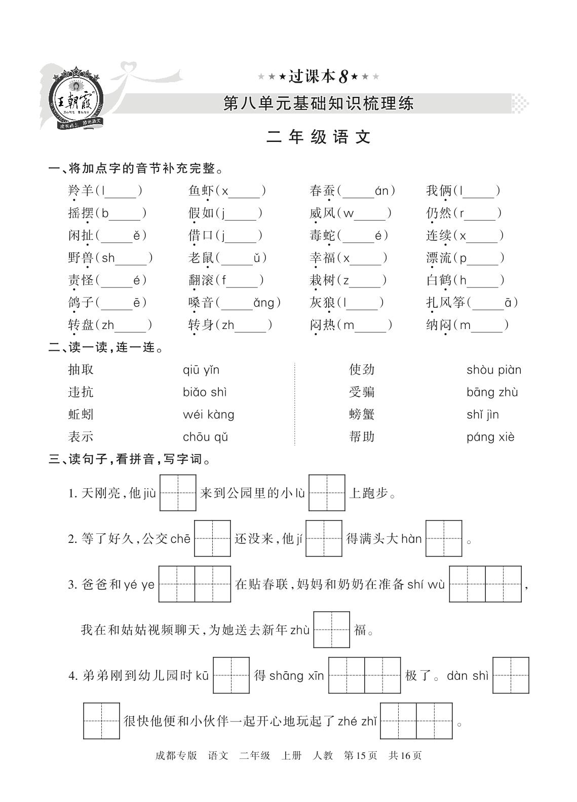 王朝霞期末过课本——第八单元基础知识梳理练二年级上册语文(人教版)【8】