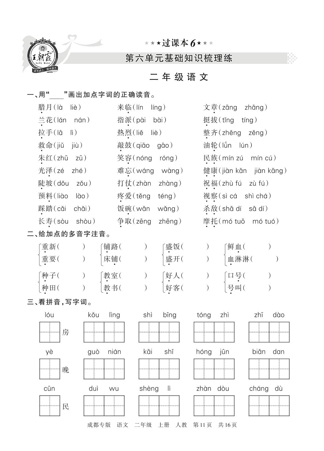 王朝霞期末过课本——第六单元基础知识梳理练二年级上册语文(人教版)【6】