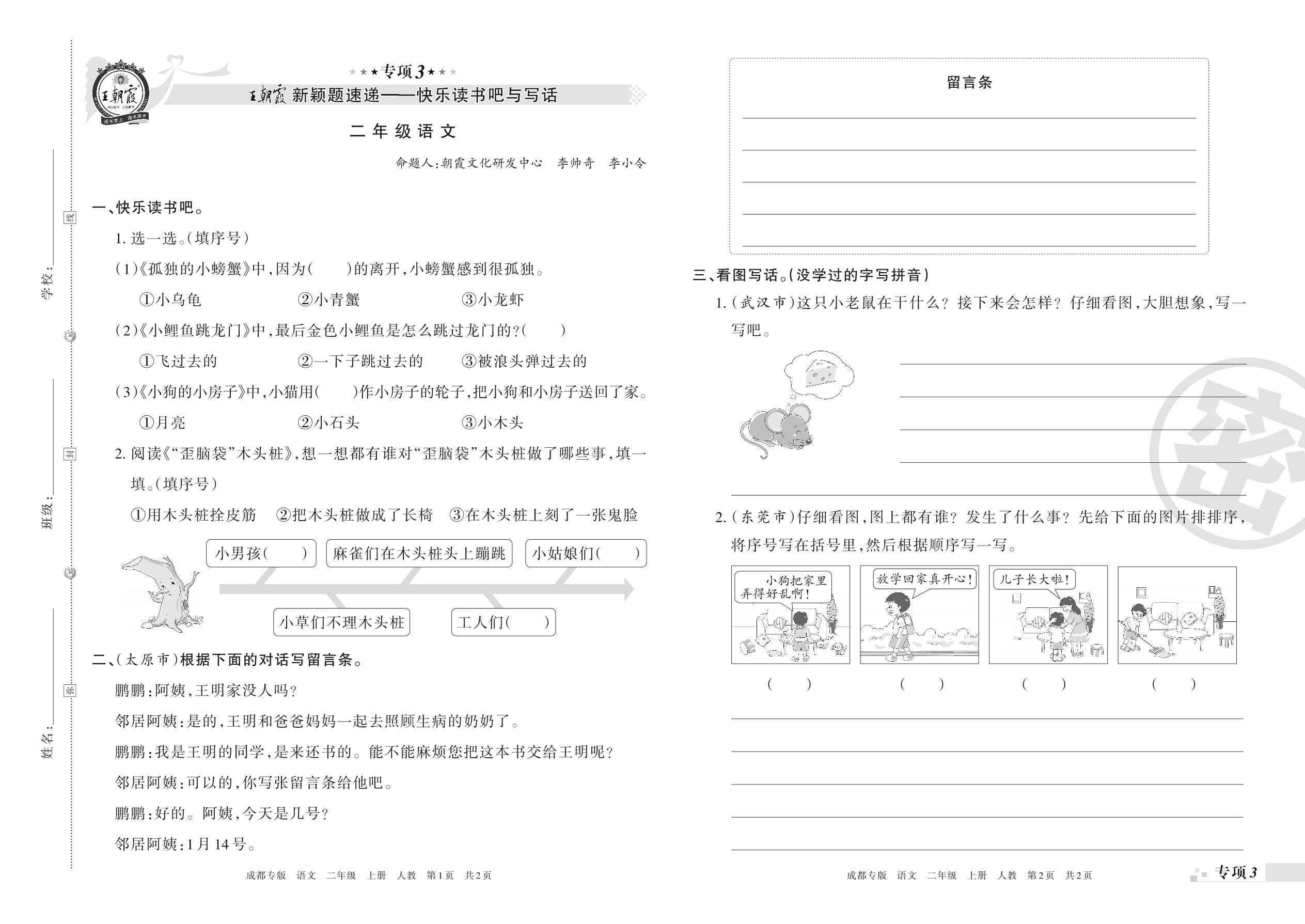 王朝霞期末专项卷——新颖题速递:快乐读书吧与写话二年级上册语文(人教版)【3】