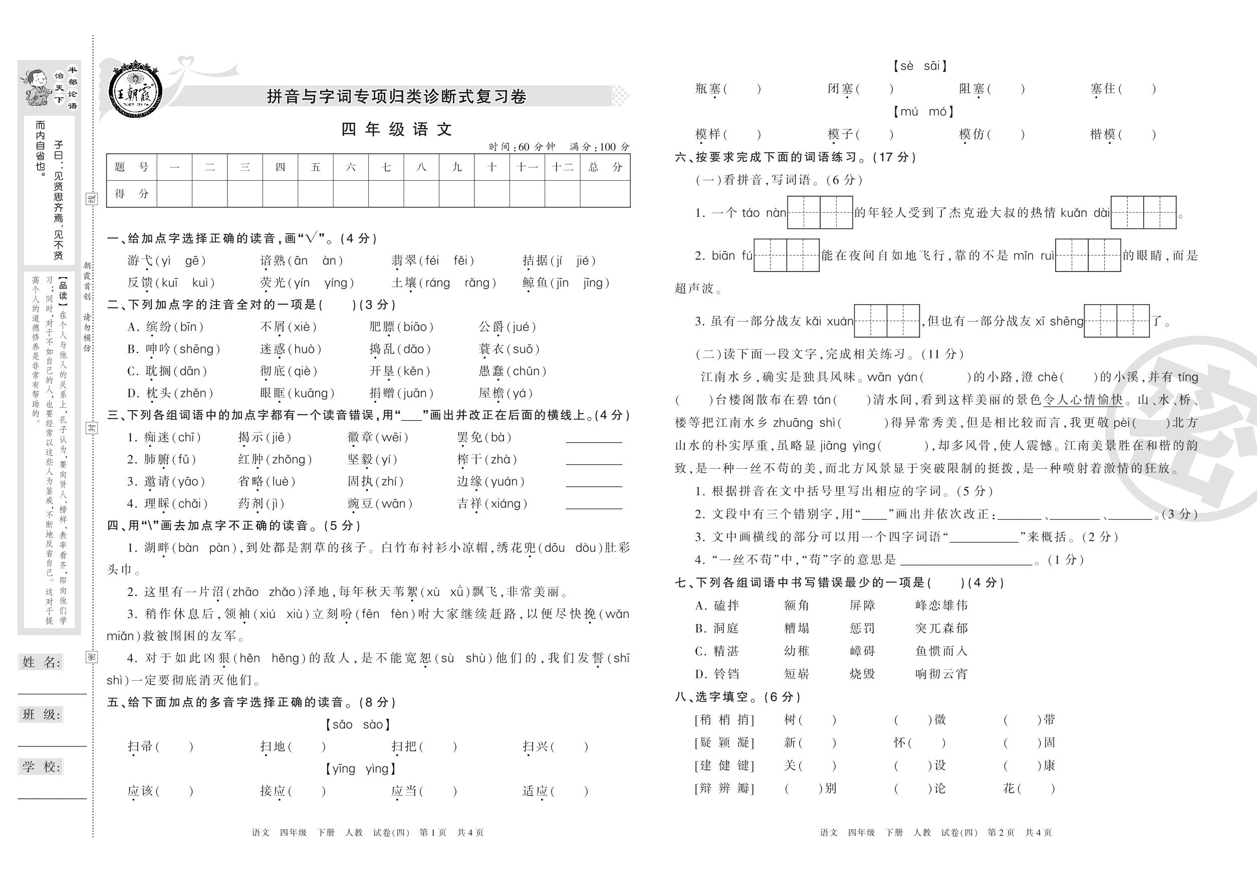 王朝霞期末专项卷四年级下册语文(人教版)_R210801212321【4】