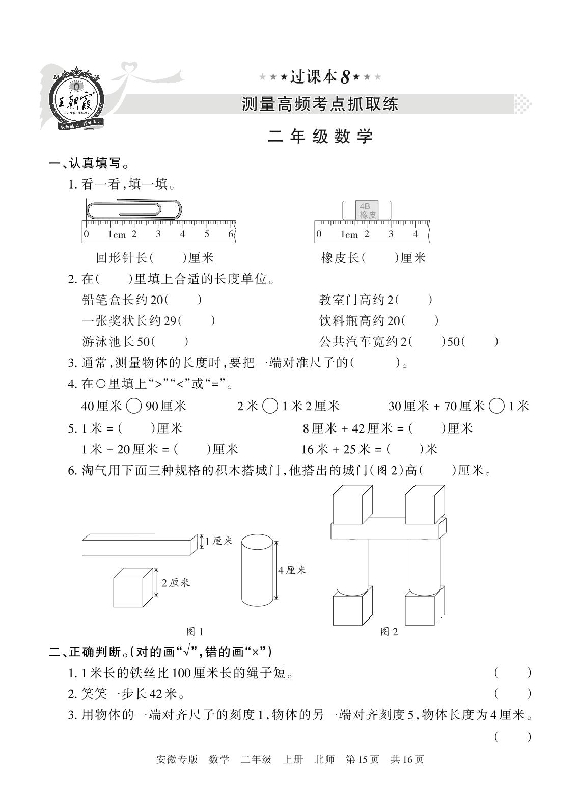 王朝霞期末过课本——测量高频考点抓取练二年级上册数学(北师版)_R211222105934114【8】