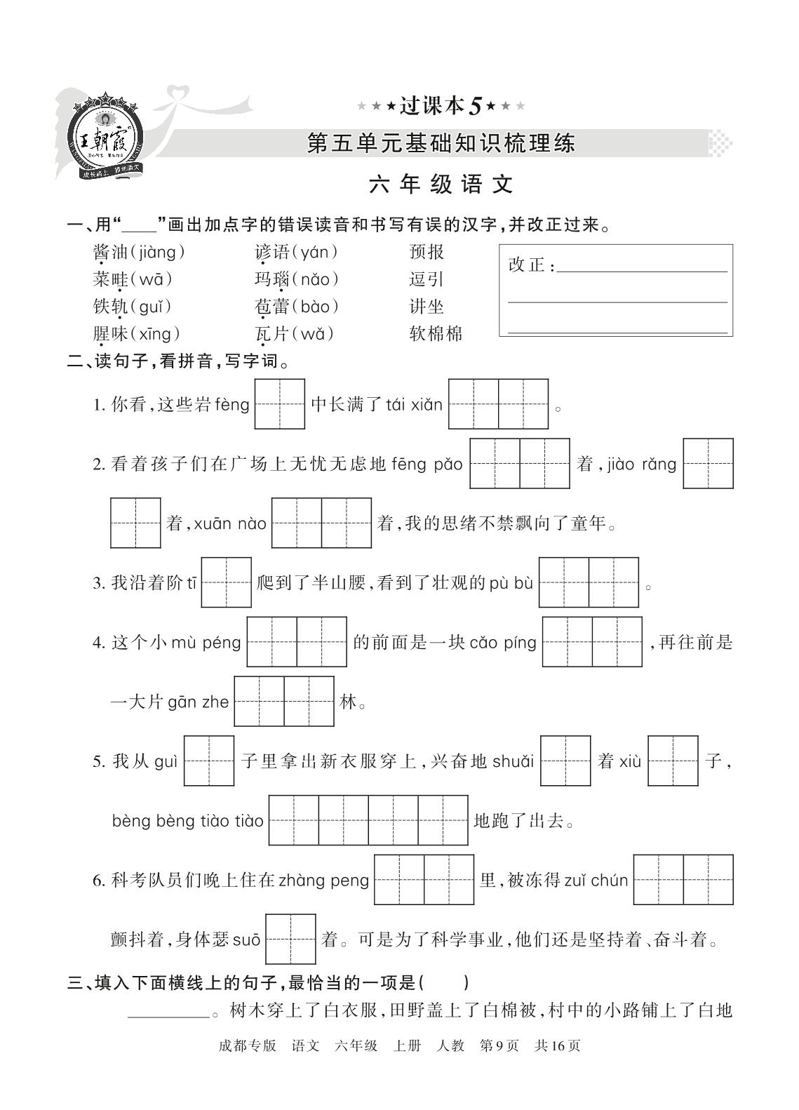 王朝霞期末过课本——第五单元基础知识梳理练六年级上册语文(人教版)【5】