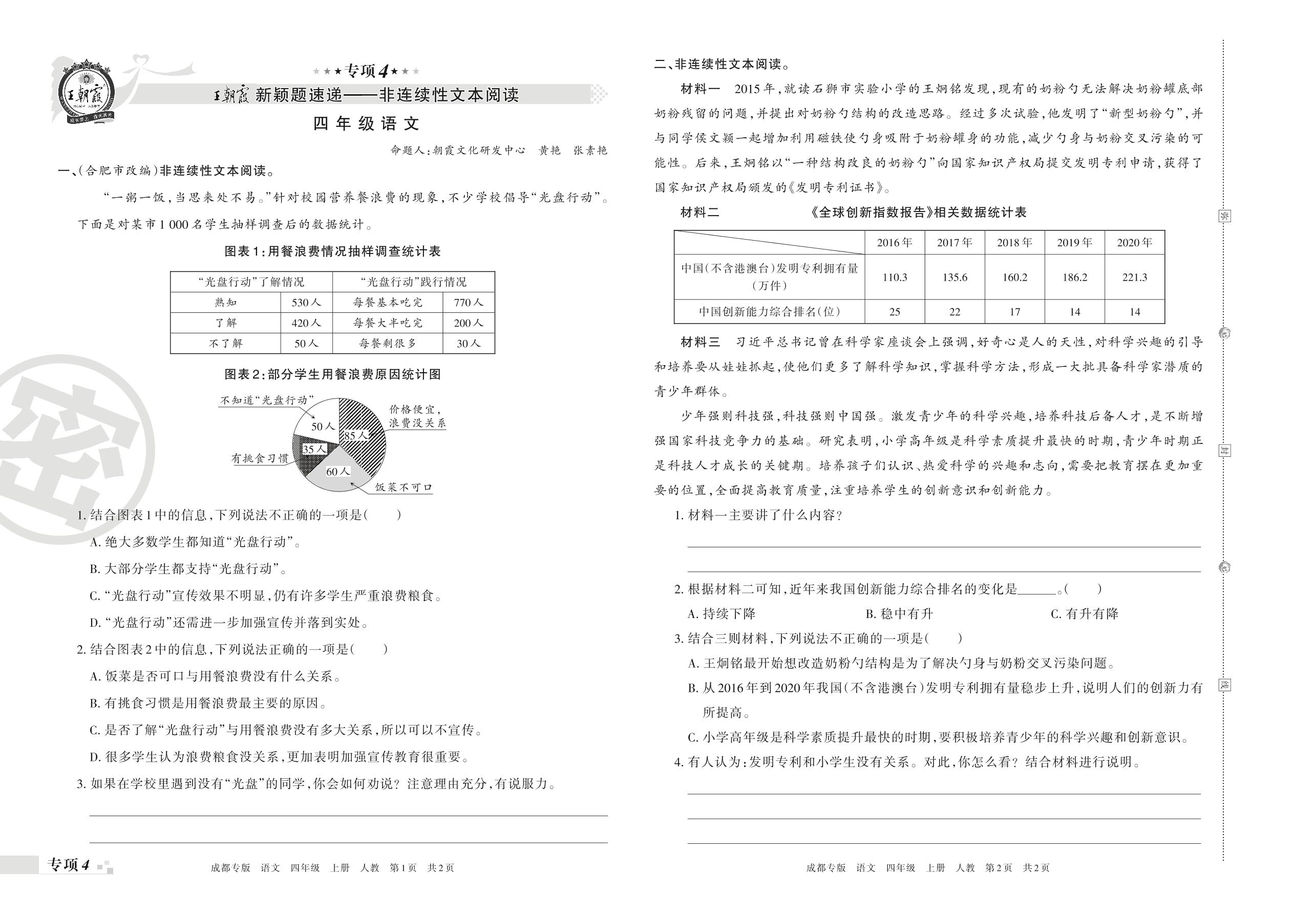 王朝霞期末专项卷——新颖题速递:非连续性文本阅读四年级上册语文(人教版)【4】