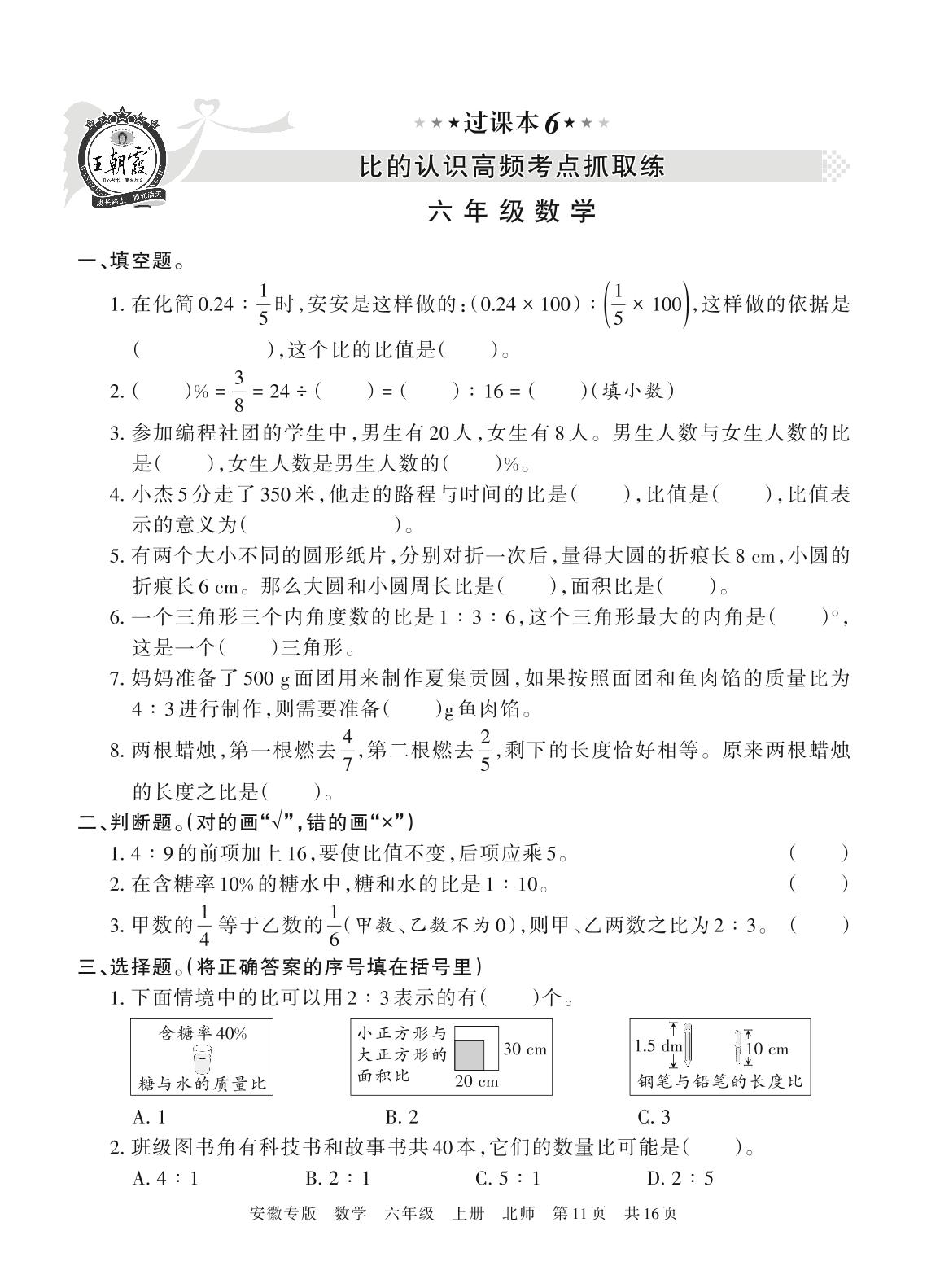 王朝霞期末过课本——比的认识高频考点抓取练六年级上册数学(北师版)_R211222111240033【6】