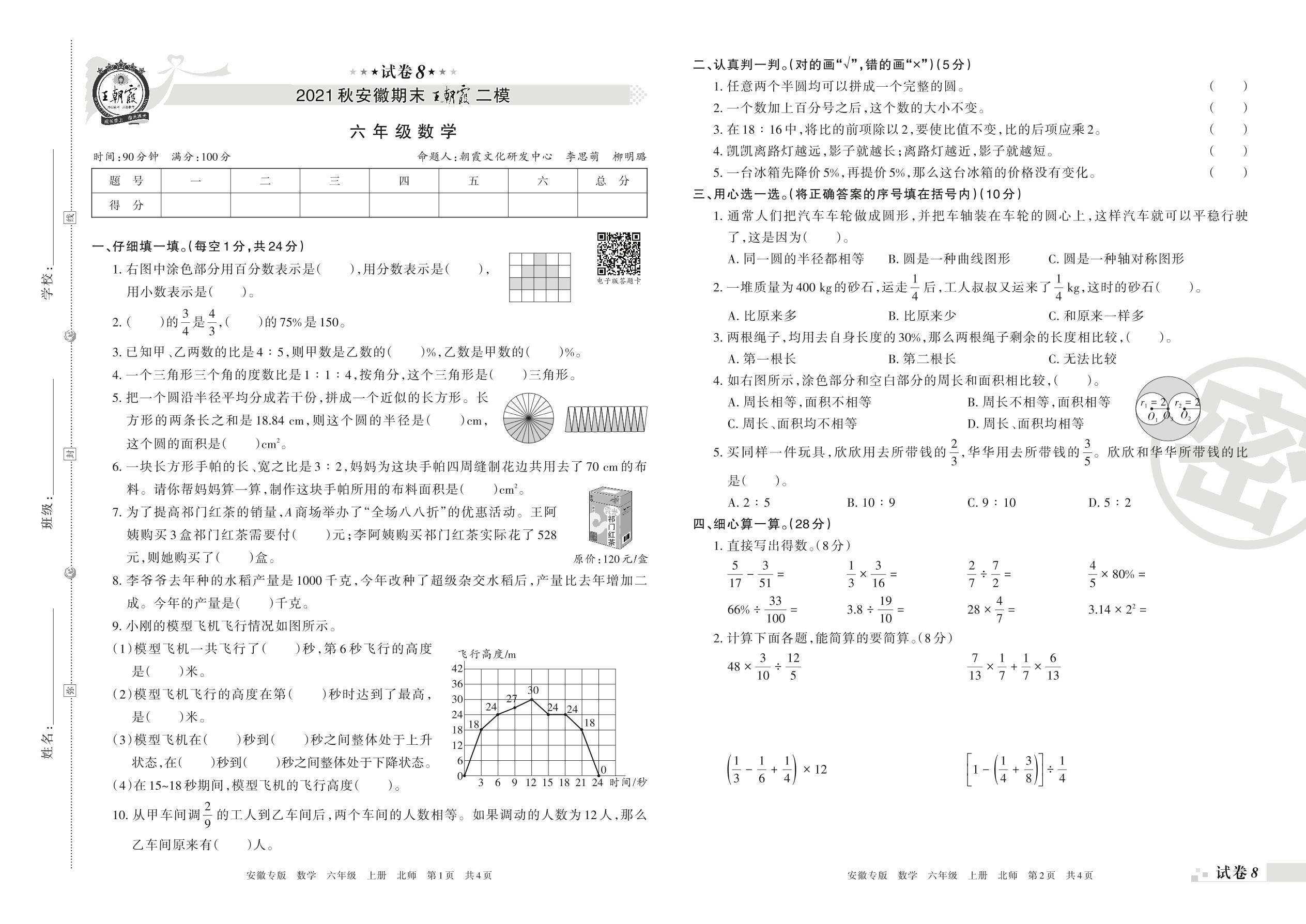 王朝霞期末模拟卷六年级上册数学(北师版)_R211222111241570【8】