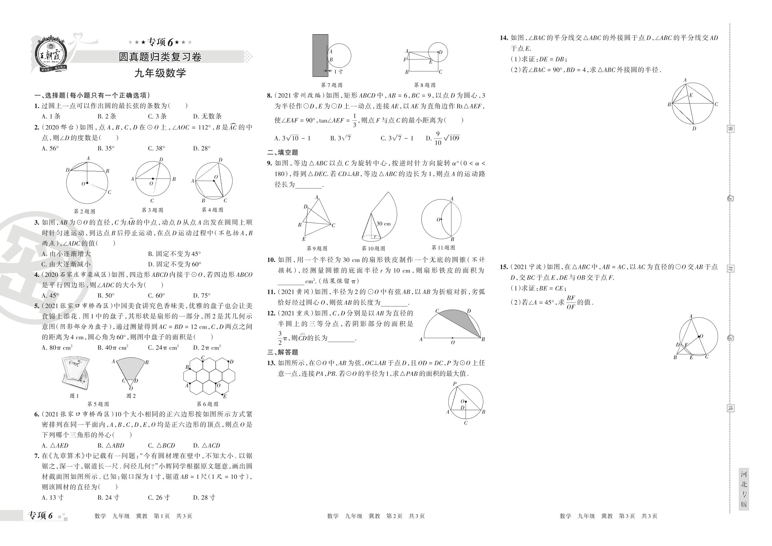 2021-2022学年第一学期王朝霞期末专项卷——圆真题归类复习卷九年级数学(冀教版)【6】