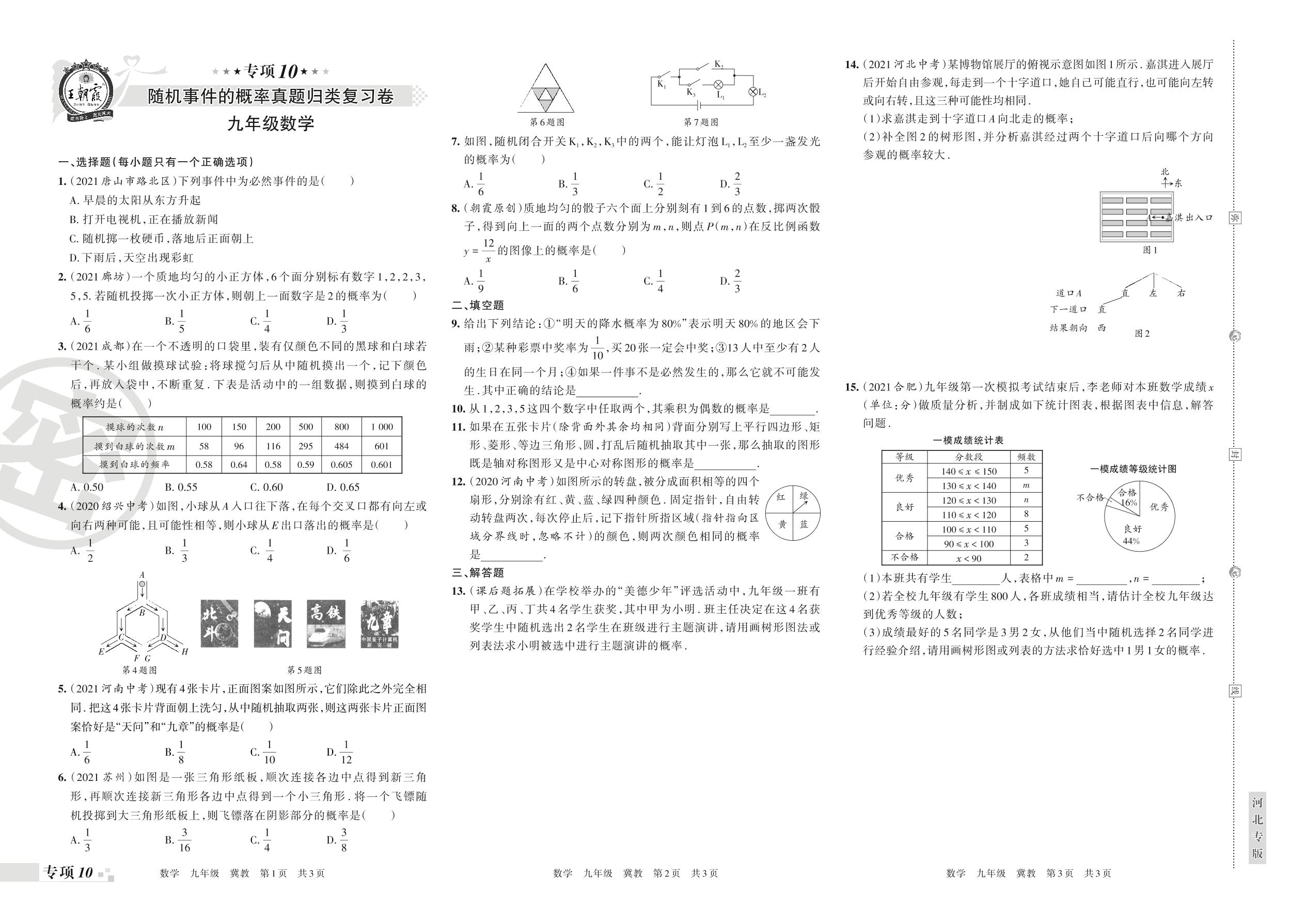 2021-2022学年第一学期王朝霞期末专项卷——随机事件的概率真题归类复习卷九年级数学(冀教版)【10】
