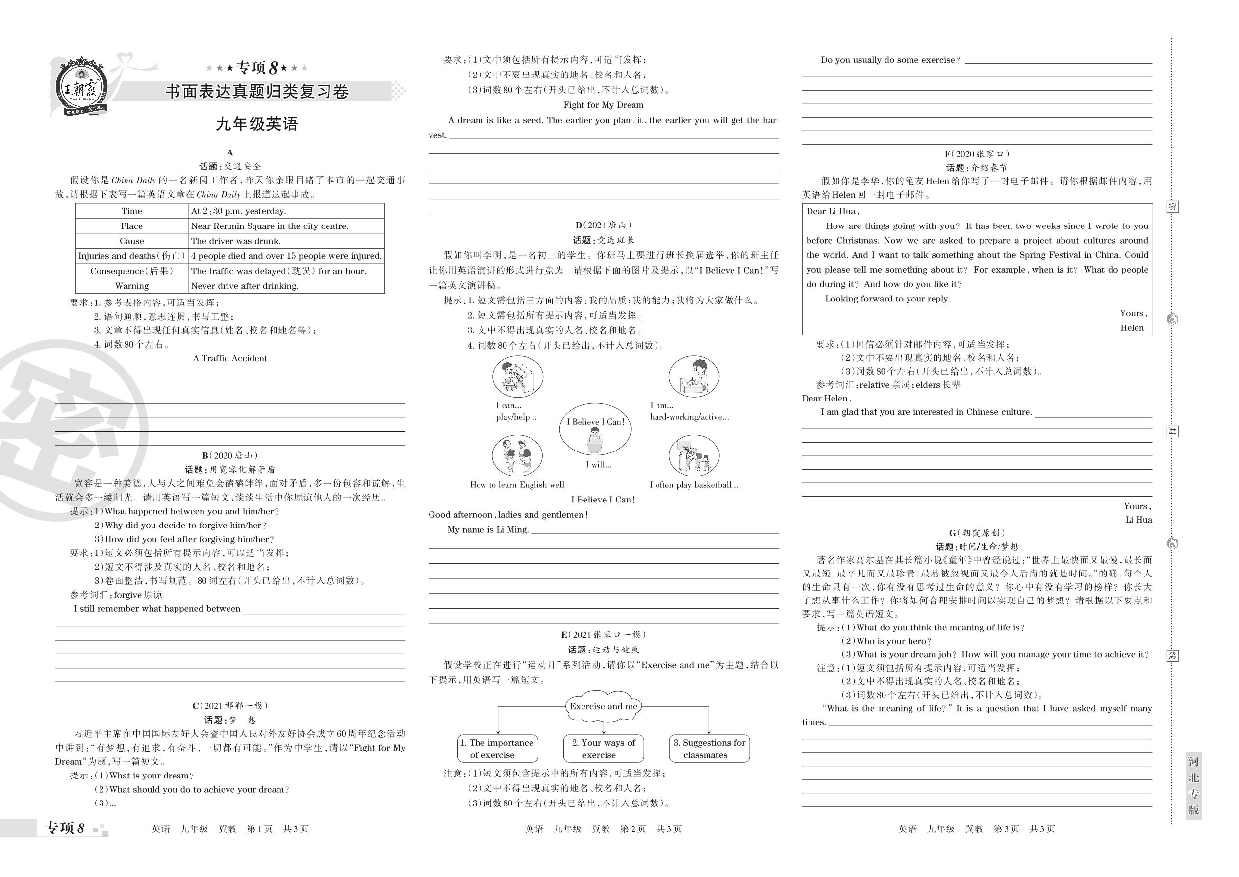 2021-2022学年第一学期王朝霞期末专项卷——书面表达真题归类复习卷九年级英语(冀教版)【8】