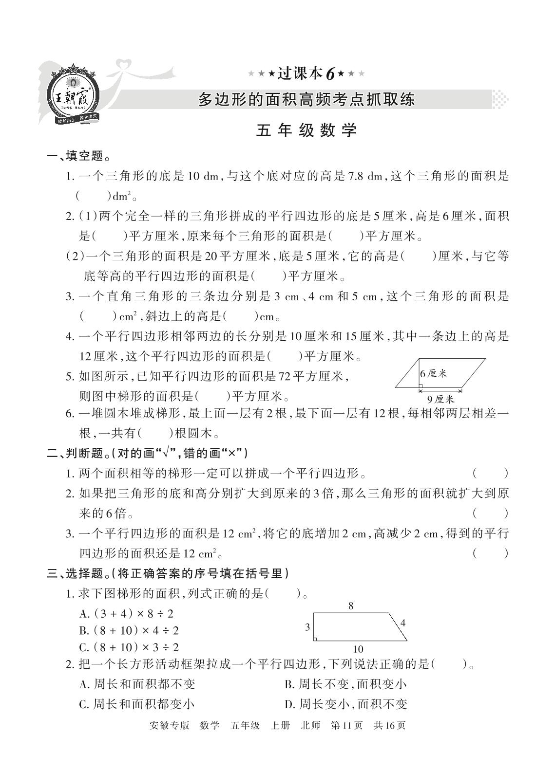 王朝霞期末过课本——多边形的面积高频考点抓取练五年级上册数学(北师版)_R211222140650585【6】