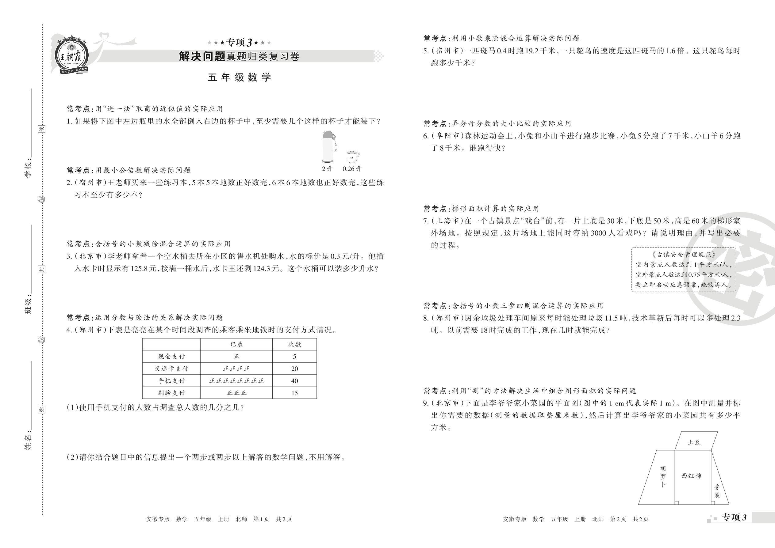 王朝霞期末专项卷——解决问题真题归类复习五年级上册数学(北师版)【3】
