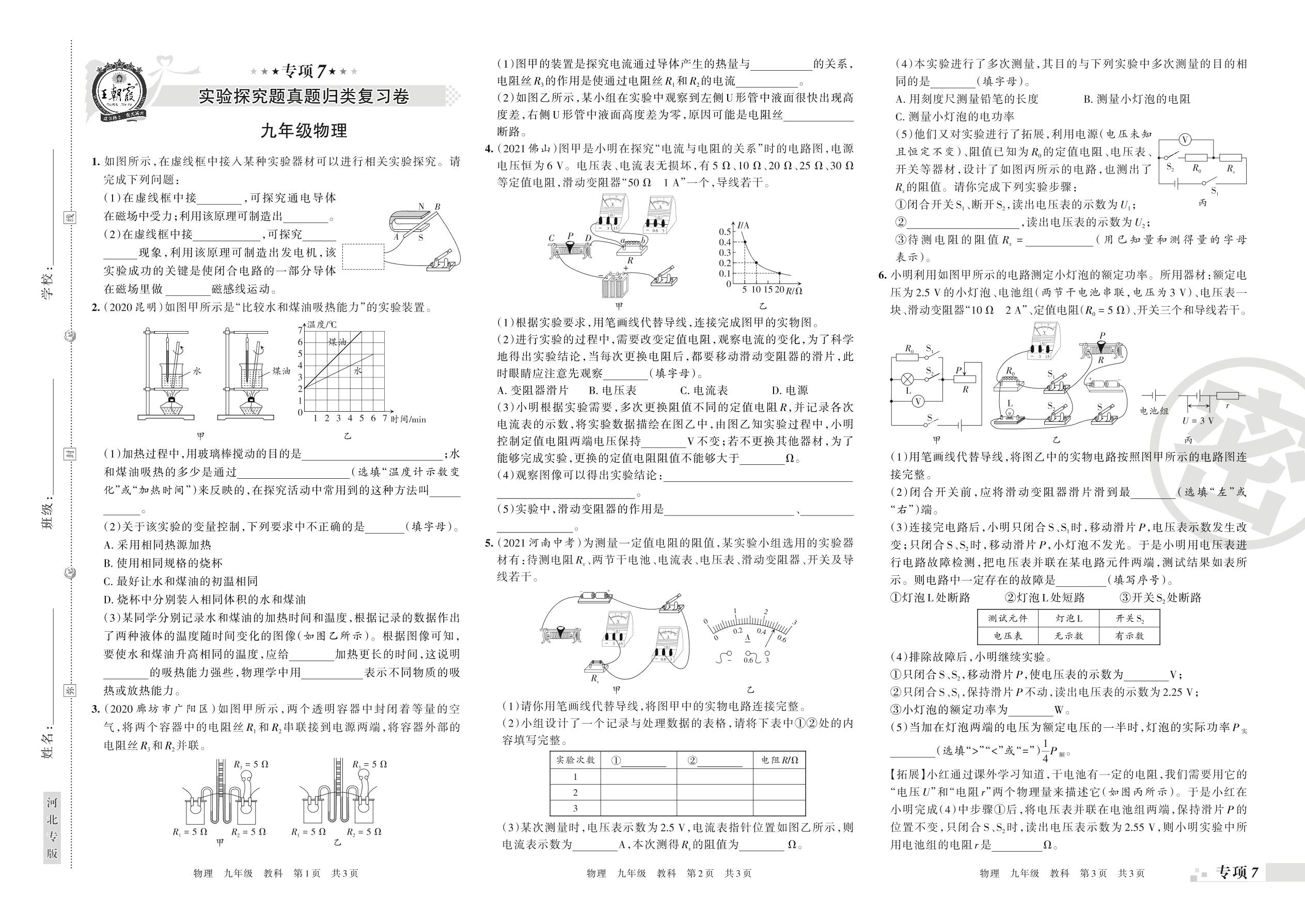 2021秋上册期末专项卷A版——实验探究题真题归类复习卷九年级全一册物理(教科版)【7】
