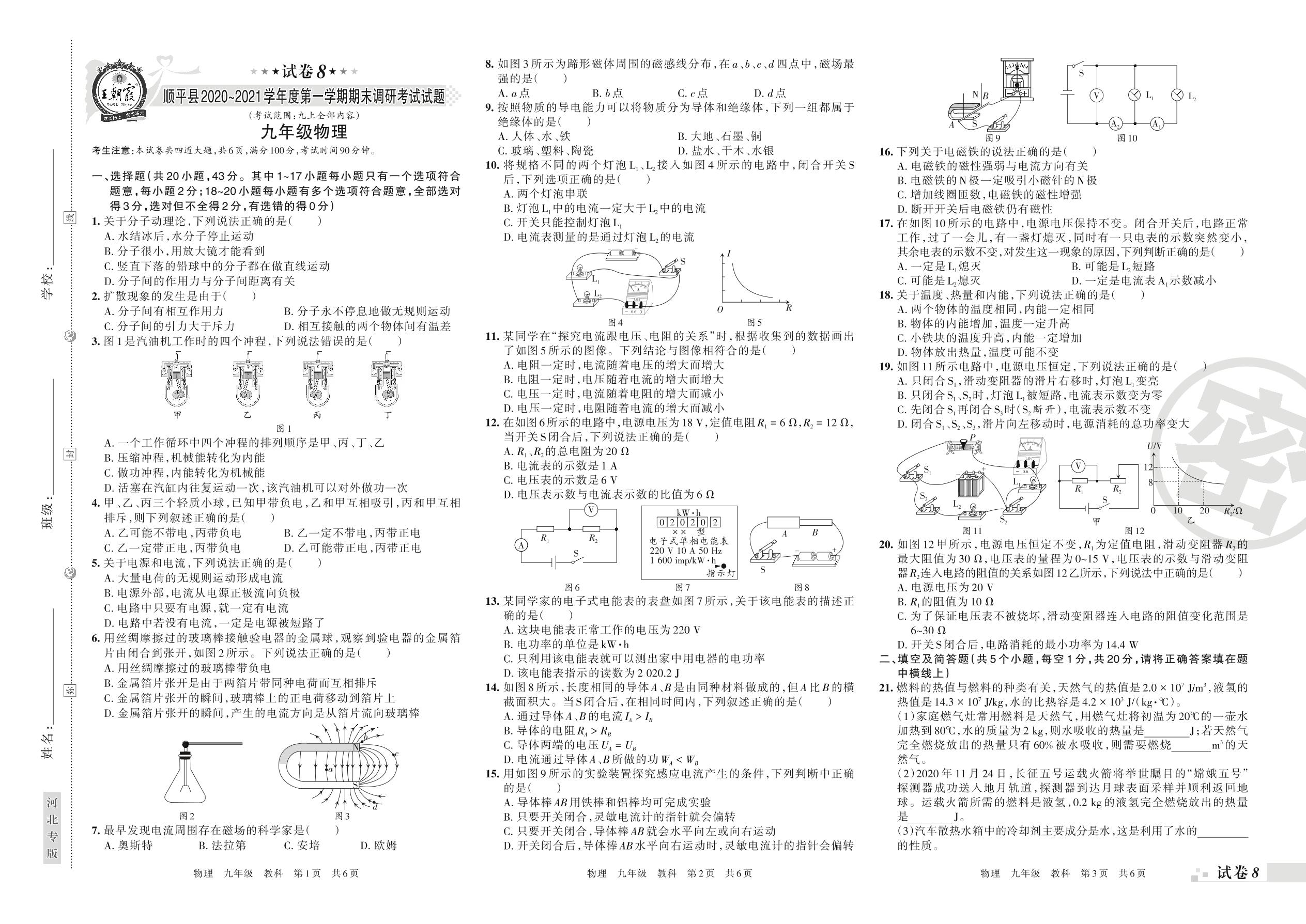 顺平县2020~2021学年度第一学期期末调研考试试题九年级物理(教科版)【8】